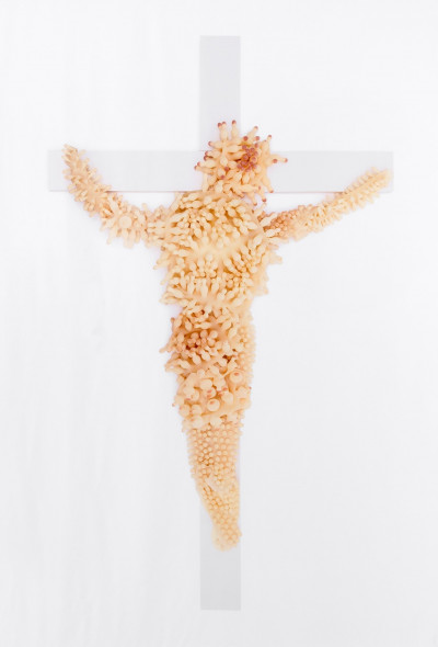 Kunst und Religion ist ein Thema, das ich seit Jahren mit viel Interesse und Neugierde reflektiere. Der Ausstellung geht eine lange Recherchearbeit voraus: viele Treffen mit Künstlerinnen und Künstlern und Kuratorinnen und Kuratoren, mit Gläubigen und Priestern, zahlreiche Ausstellungsbesuche und das Lesen von kunsthistorischer wie auch theologischen Texten. Ich stellte mir folgende Fragen: Wie begegnen Kunstschaffende im Hier und Jetzt christlichen Bildthemen? Wie integrieren sie diese in ihre Bildkonzepte, wie werden sie zitiert, transformiert und neu interpretiert? Welche Themen möchten sie damit aufwerfen, und wie stark sind diese religiös oder spirituell konnotiert? Mich überraschte, wie viele Künstlerinnen und Künstler der Gegenwart sich mit diesen Fragen auseinandersetzen! Schlussendlich habe ich 42 österreichischen und internationalen Künstlerinnen und Künstler ausgewählt, die sich mit vielfältigem Blick der christlichen Ikonografie annähern und neue, gegenwärtige Sichtweisen auf über Jahrhunderte tradierte Motive ermöglichen. Sehr bekannte, etablierte Positionen wie Marina Abramović und VALIE EXPORT, Renate Bertlmann, Margot Pilz und Hermann Nitsch begegnen auf Augenhöhe jüngeren Künstlerinnen und Künstlern wie Sumi Anjuman, Ina Loitzl, Johannes Rass oder Esther Stauss. Auch einige Südtirolerinnen und Südtiroler sind dabei, etwa Aron Demetz, Paul Sebastian Feichter, Sissa Micheli, Sylvie Riant, Thomas Sterna; ich kann und will meine Herkunft nicht verleugnen! Basierend auf der Auswahl haben ich sieben Themenkapitel definiert: Ikone, (Schein-)Heiligkeit, Kreuz, Auferstehung, Göttlichkeit, Madonna und Letztes Abendmahl. Dabei ist es mir sehr wichtig, dass sich das einzelne Werke in der Ausstellung in stimmigen Dialogen begegnen.