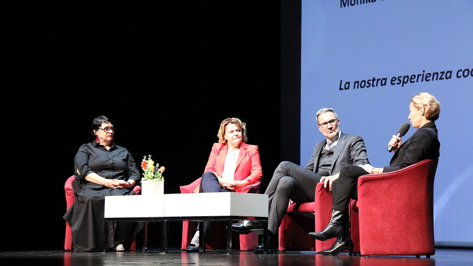 Landesrätin Rosmarie Pamer spricht über die Rolle von Coopbund, genossenschaftliche Werte und die Bedeutung der Sozialgenossenschaften für sozialen Zusammenhalt in Südtir