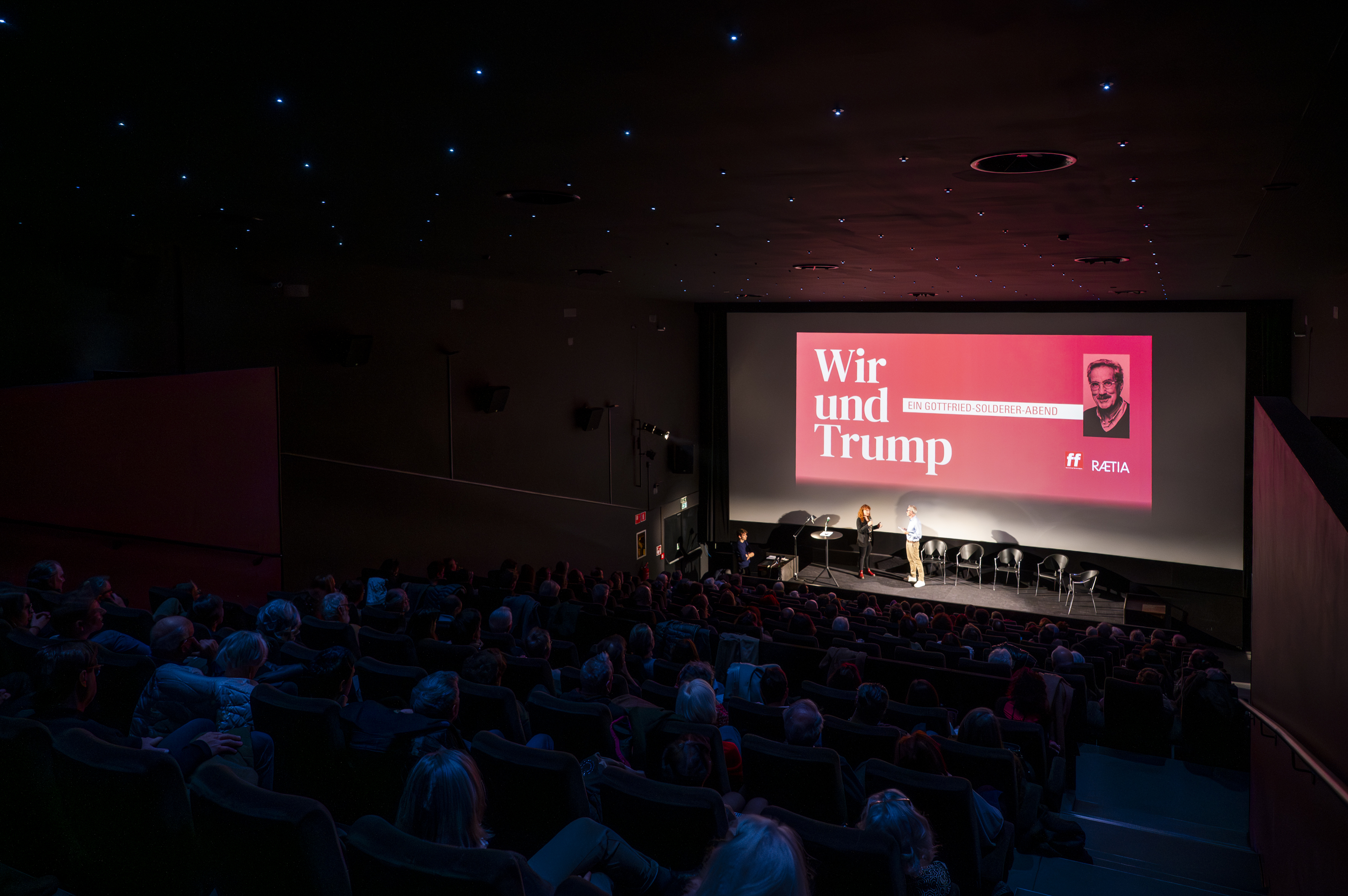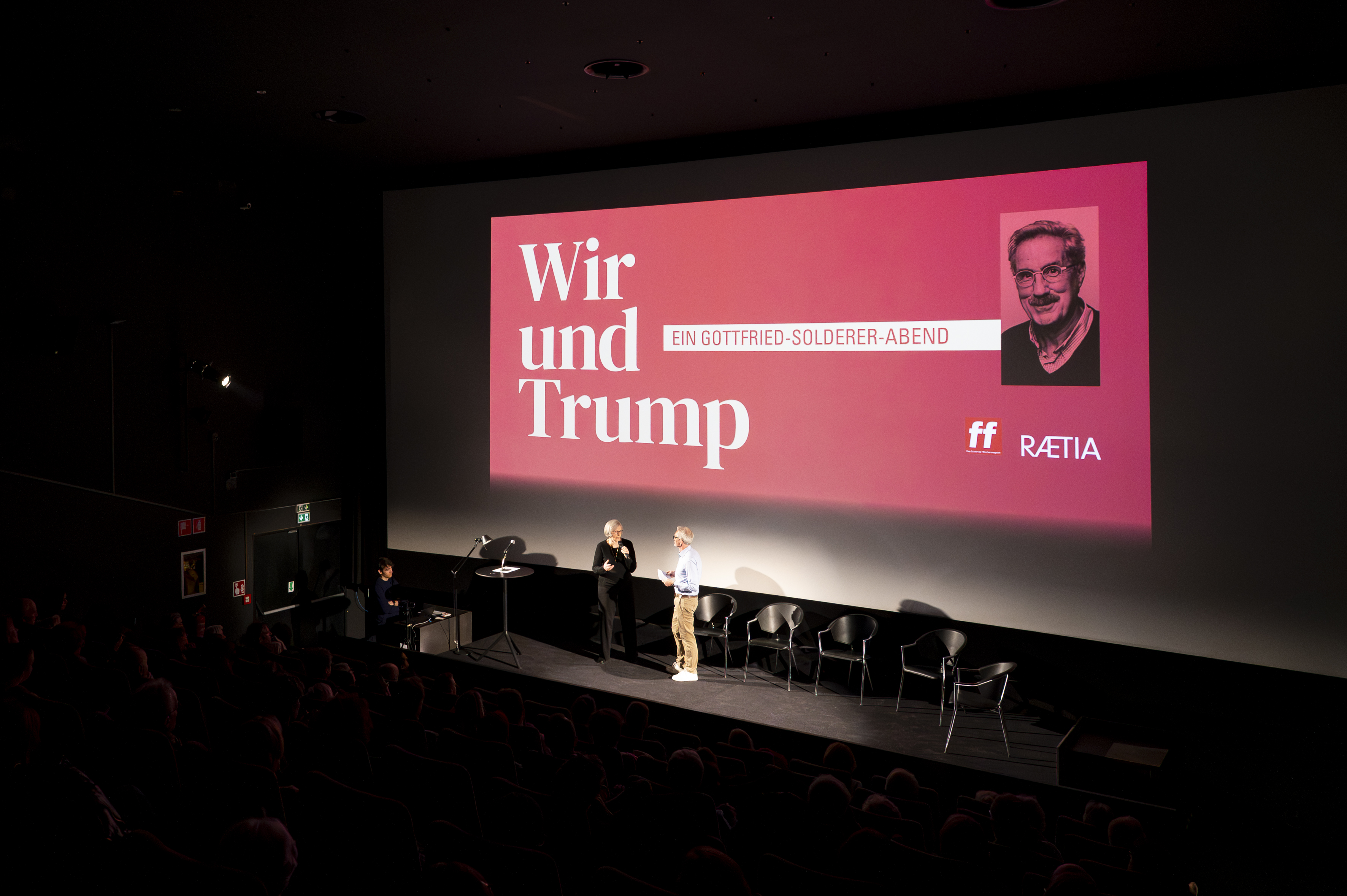 Am Mittwoch, 25. Februar, fand im Filmclub Bozen der diesjährige Gottfried-Solderer-Abend statt. Als Kulturmensch hat Solderer, der Gründer der „ff“ und der Edition Raetia 2016 auf eine Aussage Donald Trumps reagiert. Dieser soll gesagt haben, der Geruch von Büchern mache ihn müde, worauf Solderer meinte, er verlege weiter Bücher, vielleicht werde Trump so schneller müde. Dies ist nicht geschehen.Welche Möglichkeiten der Reaktion es auf präfaschistische Tendenzen und Erpressungszölle gibt,war Thema der dritten Ausgabe des Gottfried-Solderer-Abends, unter anderem mit einem Gespräch über Solderers journalistisches Engagement mit Biografin Adina Guarnieri, einer Lesung von Yvonne Miracolo aus dem Buch „Faschismus auf dem Land“ und einem Gespräch mit Autorin Monika Mader sowie mit Gianluca Battistel über seinen Roman „Una settimana di luglio“. Im Anschluss folgte eine Podiumsdiskussion zum Thema Wir und Trump welche das Wochenmagazin ff demnächst als Hörfile auspielen wird.