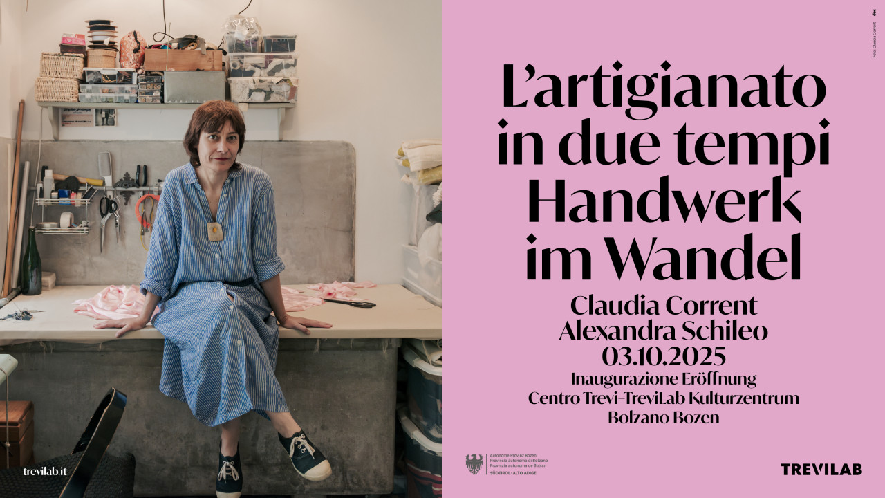Al Centro Trevi-TreviLab si apre la mostra L’artigianato in due tempi – Handwerk im Wandel, un progetto che intreccia il valore del passato con la contemporaneità. Promossa dal Dipartimento Cultura italiana e Sviluppo Economico, l’esposizione mette in dialogo due sguardi fotografici: quello dell’artista visiva altoatesina Claudia Corrent, che ha realizzato gli scatti degli artigiani di oggi, con quello di Alexandra Schileo, che nel 1998 ha documentato i mestieri tradizionali altoatesini della mostra Il tempo dell’uomo. Mestieri che vanno scomparendo.