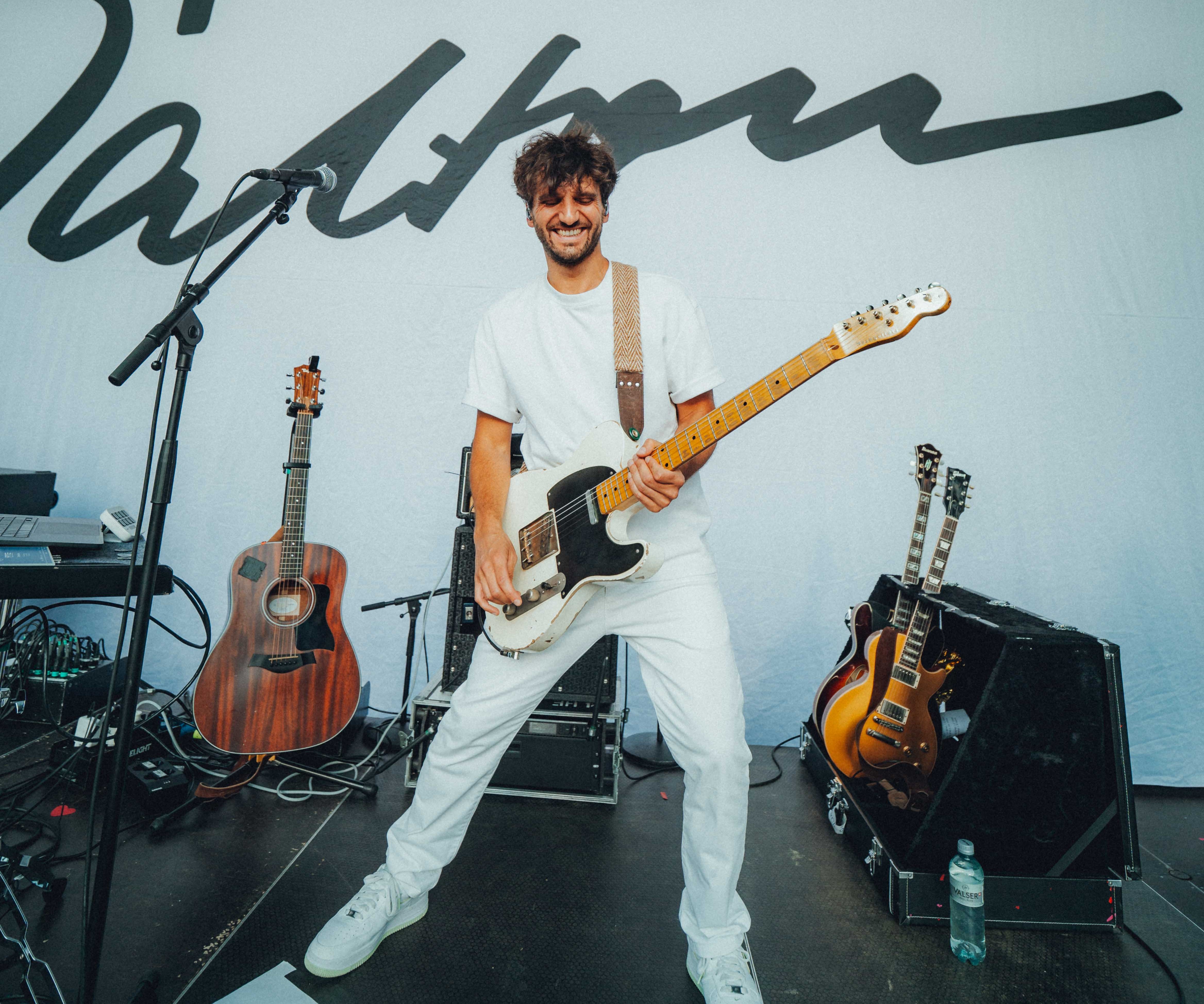 Es dreht sich rasend schnell – und ich hatte in diesem Moment einfach unfassbares Glück. Eigentlich kam der Kontakt ganz banal über eine Facebook-Gruppe zustande. Die suchten einen Gitarristen für 70 Gigs. Beim Treffen in Hamburg ging es gar nicht primär um meine Riffs. Die wollten checken: Ist das ein Typ, mit dem man 70 Shows lang auf engstem Raum klarkommt? Einen Tag später hatte ich die Bestätigung und eine Liste mit Terminen: Hurricane, Southside, Highfield – die größten Bühnen Deutschlands. Mein Leben hat sich buchstäblich über Nacht gedreht. Das war der Türöffner für alles, was danach kam.