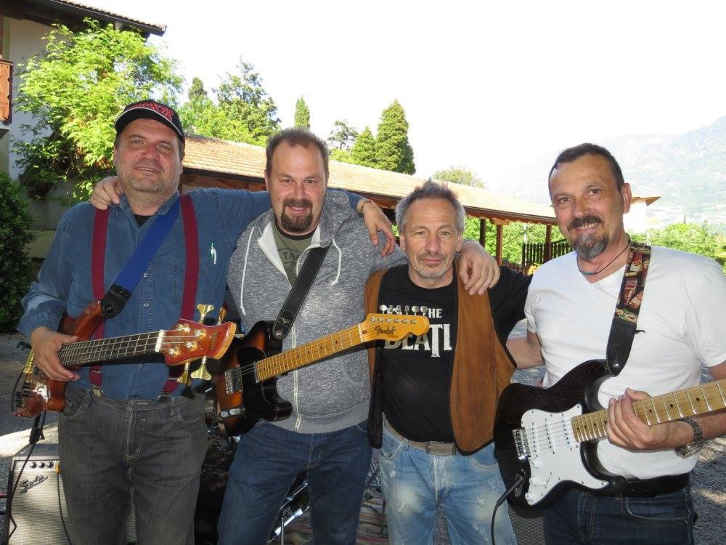Der Bozner Gitarrist Andreas Gozzi war mit Poldo vor allem in den Neunzigerjahren gemeinsam unterwegs, zuerst mit der Bluesrock-Band Route 66 (im Bild oben) und dann in Four Roses (im Bild unten), eine Band die auch eigene Songs geschrieben hat und auch ein Album veröffentlichte. Gozzi ist heute Gitarrist der Bozner Southern-Rock-Band Backbone Boogie.
