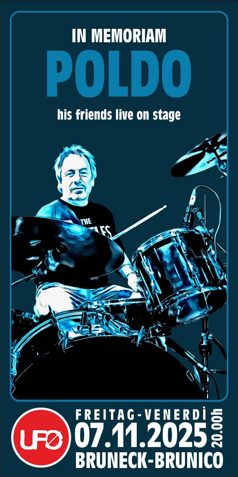 Heute Abend findet im UFO Bruneck die große Session „In Memoriam Poldo“ statt. Damit erinnern Musiker und Freunde des Schlagzeugers Arnold „Poldo“ Obwexer (1957-2025) an ihren Weggefährten. Jeder Musiker, jede Musikerin, der/die für einen Song oder zwei auf die Bühne möchte, kann das tun, indem er oder sie sich bei den Organisatoren vor Ort oder per Mail ([email protected]) meldet. Es gibt eine Band, in die man sich einklinken kann und auch das notwendige Equipment ist vorhanden.