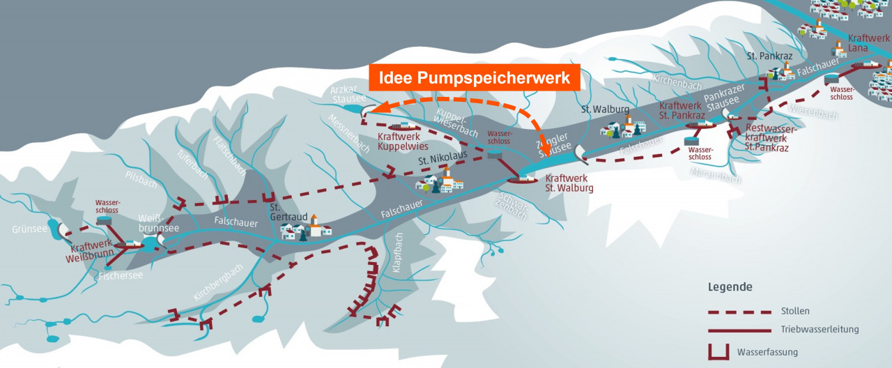 Alperia will in der Nähe von Kuppelwies und St. Walburg ein neues Kraftwerk mit einer geplanten Leistung von 400 Megawatt errichten. Doch nach Bekanntwerden der Pläne war der Protest der dort lebenden Bevölkerung groß, auch weil im Ultental bereits sechs Stauseen und fünf Kraftwerke existieren. Die angekündigte Volksbefragung zum geplanten Pumpspeicherkraftwerk verschiebt sich aber offenbar weiter nach hinten.