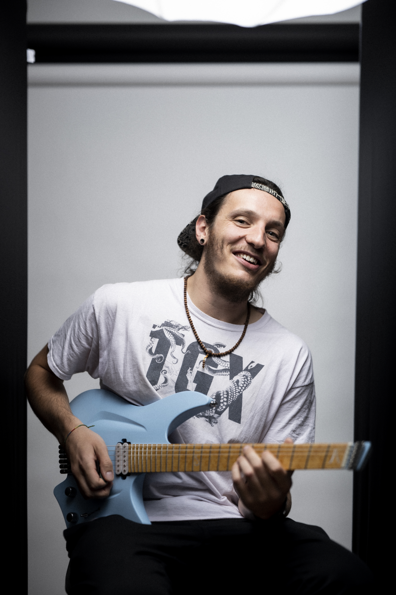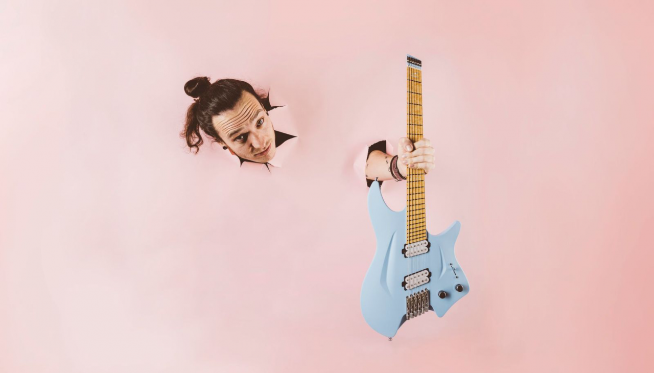 salto.music: Auf dem „Na“-Video spielst du eine Fender Telecaster. Fotos zeigen dich aber mit unterschiedlichen, auch sehr modernen Gitarren, wie etwa deine Signature Aristide, hellblau, headless und fan-fretted. Wie bringst du das zusammen… sind das nicht zwei weit voneinander entfernte Welten?