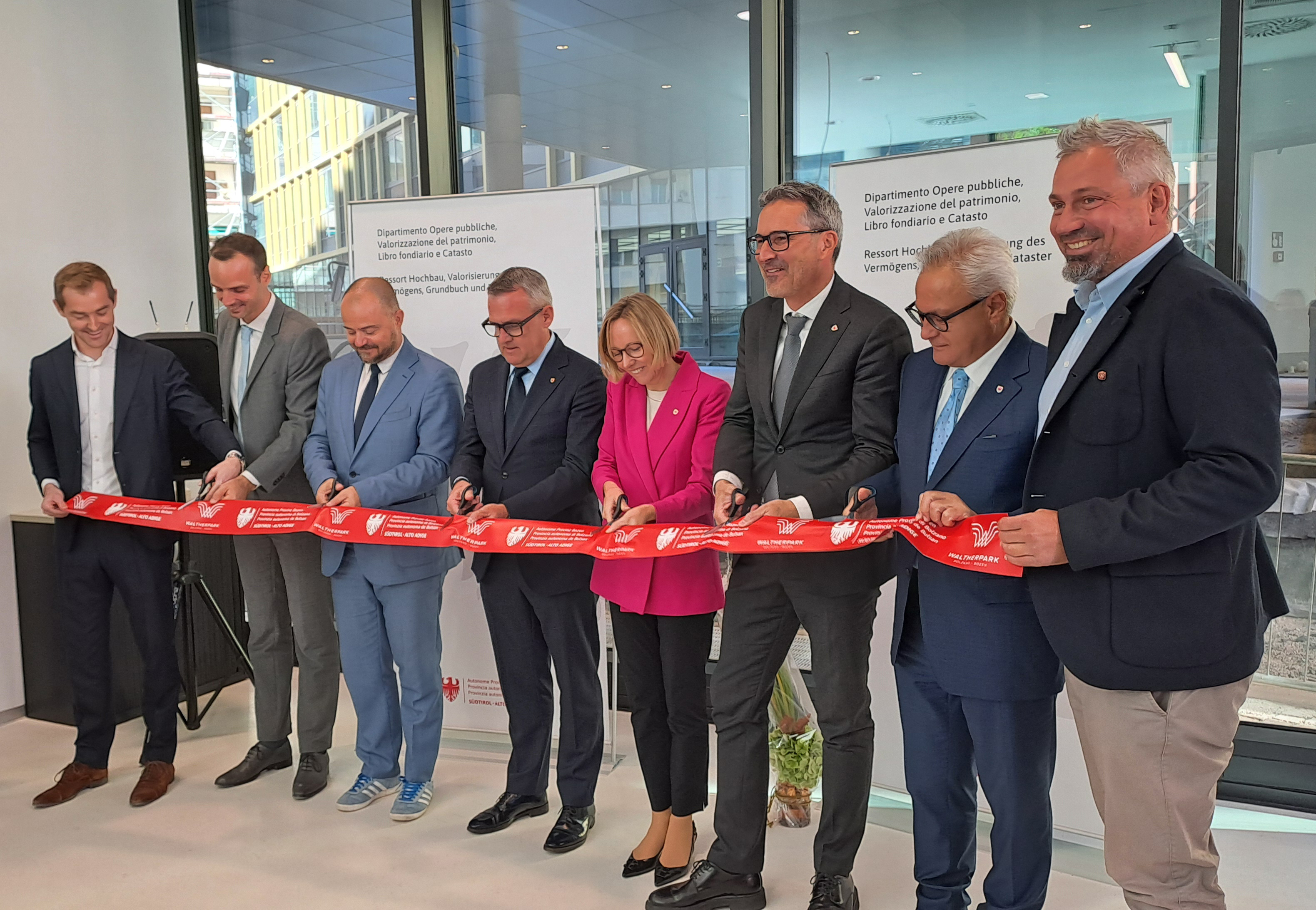 Insgesamt zwölf Einrichtungen der Landesverwaltung sind ins neue Gebäude in der Garibaldistraße 20 in Bozen übersiedelt, und zwar das Ressort Europa, Arbeit und Personal, die Landesagentur für die Gewerkschaftsbeziehungen, die Abteilung Innovation, Forschung, Universität und Museen, das Amt für Innovation und Technologie, das Amt für Wissenschaft und Forschung, das Amt für Museen und museale Forschung, die Abteilung Wirtschaftsentwicklung, das Amt für Handwerk und Gewerbegebiete, das Amt für Industrie und Gruben, das Amt für Handel und Dienstleistungen, das Amt für Landessprachen und Bürgerrechte, die Dienststelle für die Zwei- und Dreisprachigkeitsprüfungen sowie das Frauenbüro.