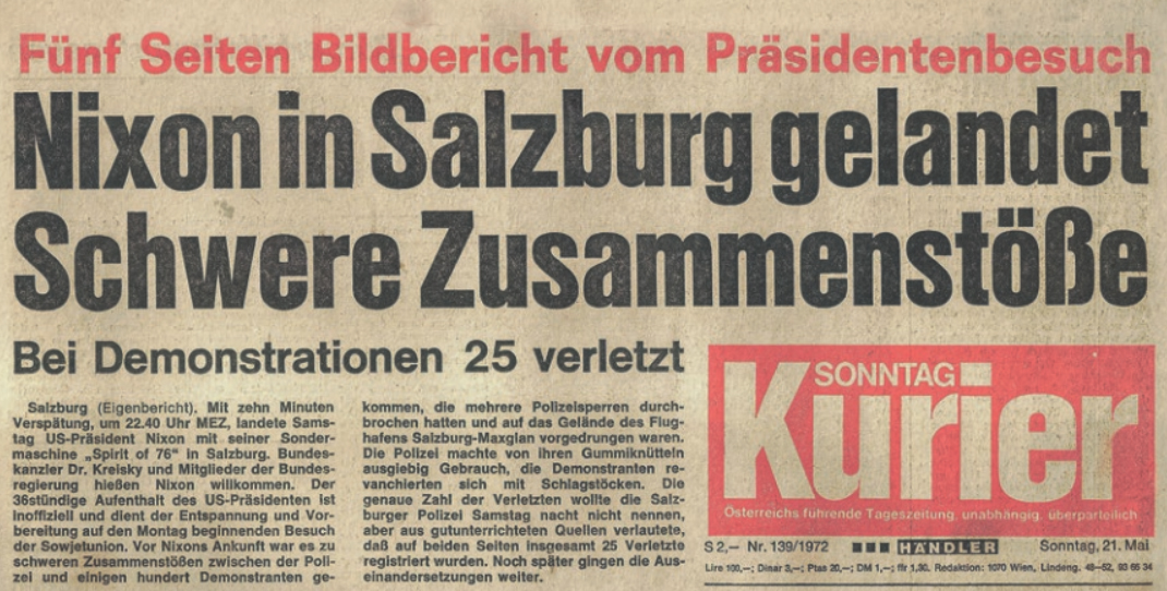 Die rigiden Sicherheitsvorkehrungen kommentierte die Wiener „Arbeiterzeitung" mit der ironischen Bemerkung, Nixon sei in Salzburg sogar vor Mozartkugeln sicher.