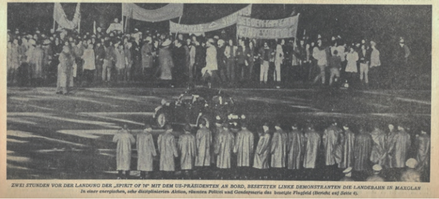 Treffpunkt war Samstag um 14:00 Uhr am Südtiroler Platz vor dem Salzburger Hauptbahnhof. Von dort aus marschierte der Trupp mit Transparenten.Solderer berichtet: „Gemeinsam sind wir zuerst durch die ganze Innenstadt: ,Breschnew und Nixon, wir werden euch verwixen.' Wir protestierten gegen beide und schützten nicht die Linke, wie es immer hieß. Wir marschierten also drauflos, bis ich irgendwann mitbekam, dass wir jetzt den Flughafen besetzen wollten. Mir ist dabei zwar schon etwas mulmig geworden, aber ich bin trotzdem mit." Etwa 200 Demonstrierende scherten auf dem letzten Teilstück vom Tross aus und hechteten im Laufschritt in Richtung Flughafen. Die Polizei eilte ihnen hinterher und versuchte, der Meute mit Bussen und Motorrädern den Weg zu versperren - Beamte mit Stahlhelmen sprangen von ihren Einsatzfahrzeugen, um die Menge auseinanderzujagen, was aber nur teilweise gelang. Gottfried Solderer: „Der Flughafen war zwar abgeriegelt und die Polizei hatte gut 1.000 Leute eingesetzt, aber auf Schleichwegen durch die Wiesen haben wir es irgendwie bis zur Rollbahn geschafft. Der gute Nixon musste eine Stunde lang mit seinem Flieger über dem Flughafen kreisen und konnte nicht landen. Wir lagen auf dem Asphalt der Landebahn. Also holte die Polizei noch mehr Verstärkung. Was dann passierte, werde ich nie mehr vergessen. Um sich Mut zu machen, gingen die Polizisten mit Indianergebrüll und Gummiknüppeln auf uns los. Als wir vertrieben wurden, fiel eine Freundin von mir in ein Straßenloch und ich habe versucht, ihr zu helfen. Ohne Rücksicht haben sie auf uns eingeprügelt. Mehrere von uns wurden verhaftet. Weil ich die Gegend gut kannte, haben wir es um fünf Uhr früh irgendwie geschafft, zu entkommen. Gemeinsam haben wir uns dann in unserer Unterkunft Spaghetti gekocht." Fast 40 Minuten dauerte der Einsatz am Flughafen. Es gab Verhaftungen, auch einige Bekannte von Gottfried Solderer wurden abgeführt. Offiziell war von 25 Verletzten die Rede, die Dunkelziffer war sicherlich um einiges höher.
