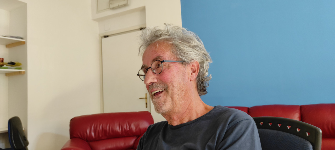Eine Möglichkeit des Beisammenseins, des Diskutierens aber auch des Feierns bot der Treff der SH, die „Bude", in der sich Gottfried Solderer mit seinen Kolleginnen und Kollegen über das aktuelle Weltgeschehen unterhielt.