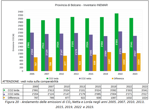 Die Antwort gleich vorweg: niemand weiß das so genau, denn es gibt kein zeitnahes Monitoring. Monitoring würde heißen: jährlich wird gemessen und im Folgejahr bekanntgegeben, wie hoch die auf dem Landesgebiet ausgestoßenen Treibhausgasemissionen liegen. Wenn sie gegenüber dem geplanten CO2-Minderungspfad zu hoch lägen, müsste die Landesregierung den Kurs korrigieren, neue Maßnahmen einleiten und laufende verschärfen. So funktioniert Klimaschutz anderswo. Warum nicht in Südtirol, wo seit Juli 2023 der Klimaplan 2040 gilt? „Während das Inputmonitoring kontinuierlich ajourniert wird, wird das Outputmonitoring jährlich veröffentlicht,“ steht im Klimaplan (S. 75). Allein im Netz findet man das nicht, genausowenig die CO2-Emissionsdaten für 2024 und 2025. Nun sollen die CO2-Emissionen bis 2030 gegenüber 2019 um -55% reduziert werden, haben aber bis 2023 laut INEMAR-Emissionsinventar netto noch zugenommen.