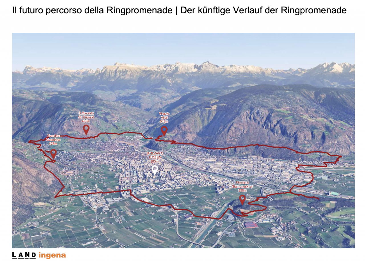Che tra le priorità della Giunta Corrarati non vi sia il “Piano del Verde”, elaborato nella scorsa consigliatura su spinta dell’allora assessora all’ambiente Chiara Rabini (Verdi), lo dimostra la bocciatura a luglio della proposta d’includere il progetto della “Ringpromenade” tra gli interventi prioritari dell’assestamento di bilancio 2025-2027. La Ringpromenade, progetto “di punta” del Piano, è un anello ciclopedonale di oltre 30 km attorno alla città, che collega i tratti di passeggiata già esistenti. “Purtroppo, mentre sono stanziati fondi per altri interventi verdi programmati dalla scorsa giunta – riqualificazione dei cortili scolastici, di Parco Premstaller, desigillazione delle aree limitrofe e rinverdimento di vicolo Gumer – l’Anello di passeggiate non è stato incluso, nonostante l’interesse crescente della cittadinanza”, commentarono in quell'occasione i Verdi.