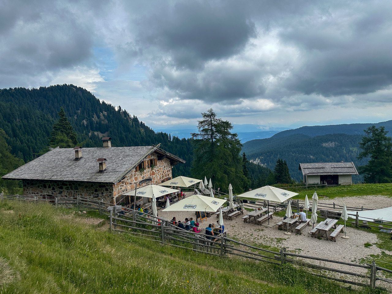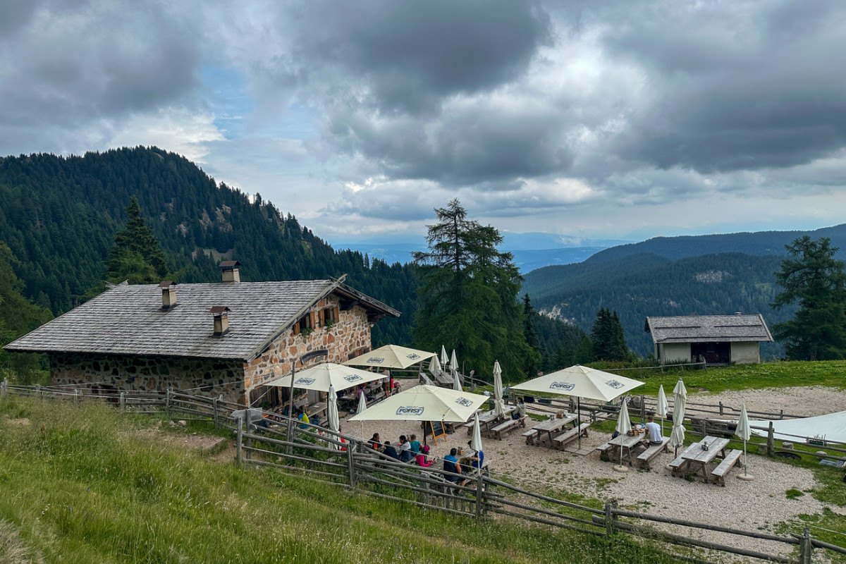 Laugenalm: Urige Almwirtschaft am Fuß des markanten Laugengipfels auf einer Geländeterrasse, von Wiesen umgeben, ein beliebtes Wanderziel, da vom Gampenpass aus leicht erreichbar. Sonnenterrasse, schöne Fernsicht bis zu den Dolomiten, einfache Hüttenkost. Tel. 348 6699795, nur im Sommer geöffnet.