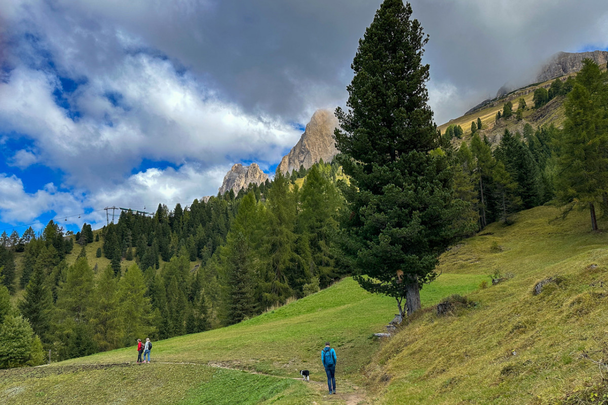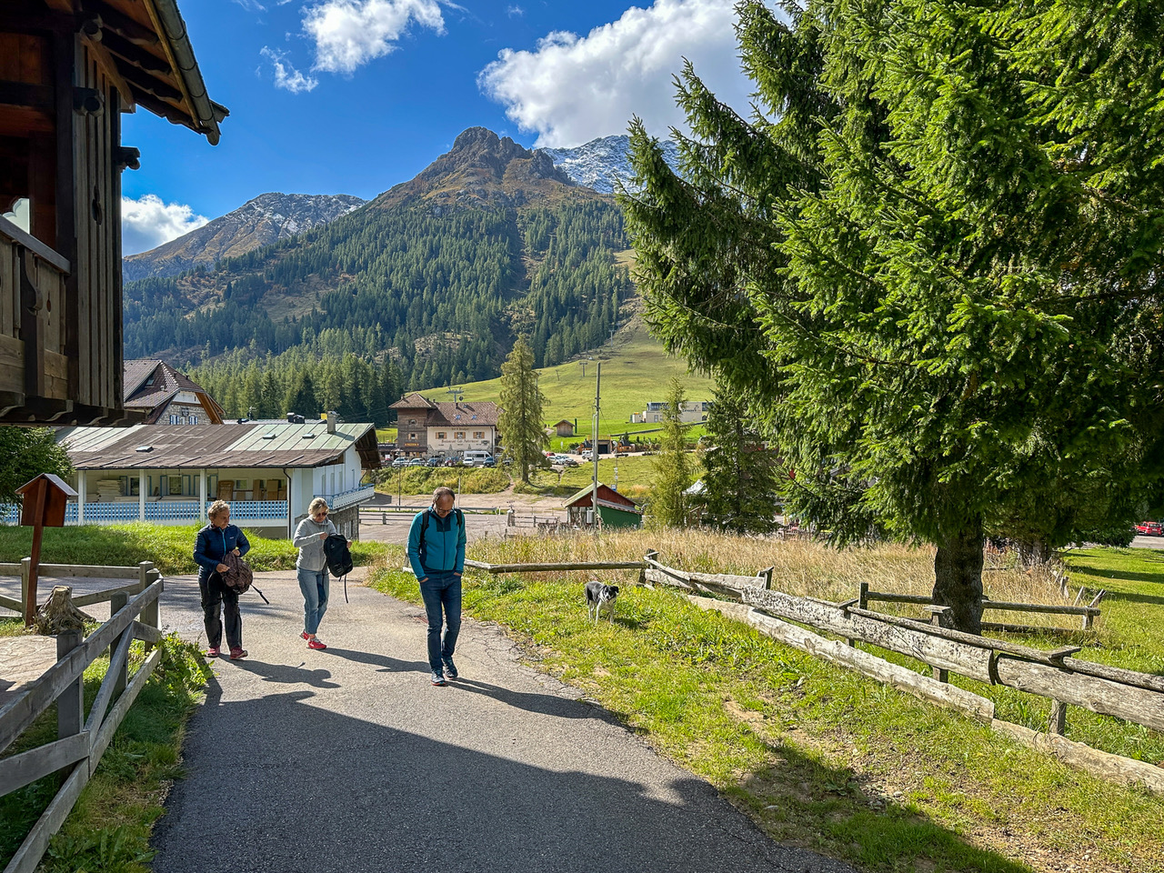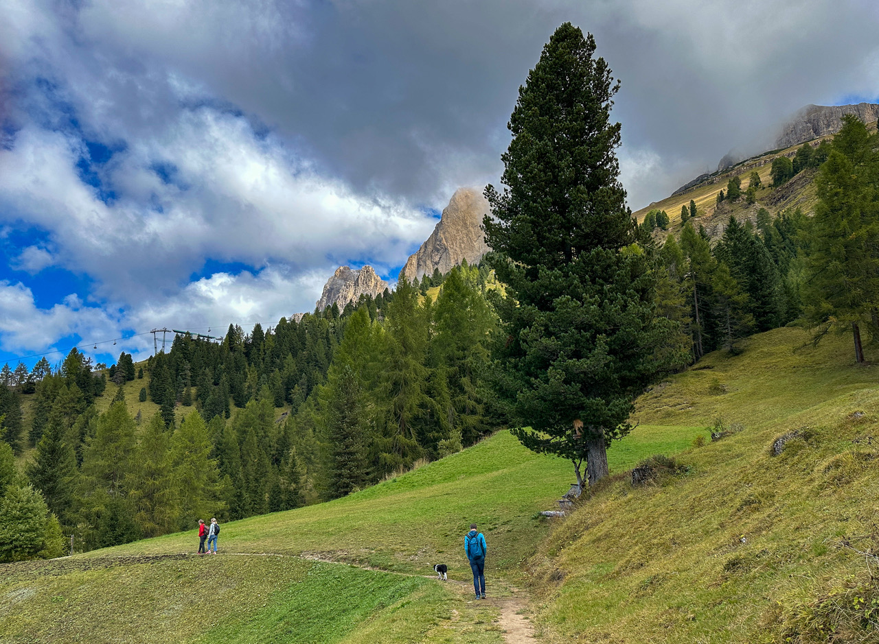 Der Nigerpass am Fuß des Rosengartens verbindet das Tierser- mit dem Eggental. Die sonnigen Hänge und zwischen Niger- und Karerpass sind ein ideales Wandergebiet, mit offenen, weiten Almwiesen und einer Reihe von Einkehrmöglichkeiten, dazu relativ stadtnah und auf guten Straßen auch mit Öffis leicht zu erreichen. Im Herbst ist eine gute Zeit, der Touristenandrang hält sich in Grenzen, auf den Wegen ist kaum was los. Ueine Unser Ziel ist heute der Gasthof Jolanda, in freier Lage auf 1840 m etwas oberhalb der Straße gelegen, welche den Niger- mit dem Karerpass verbindet.
