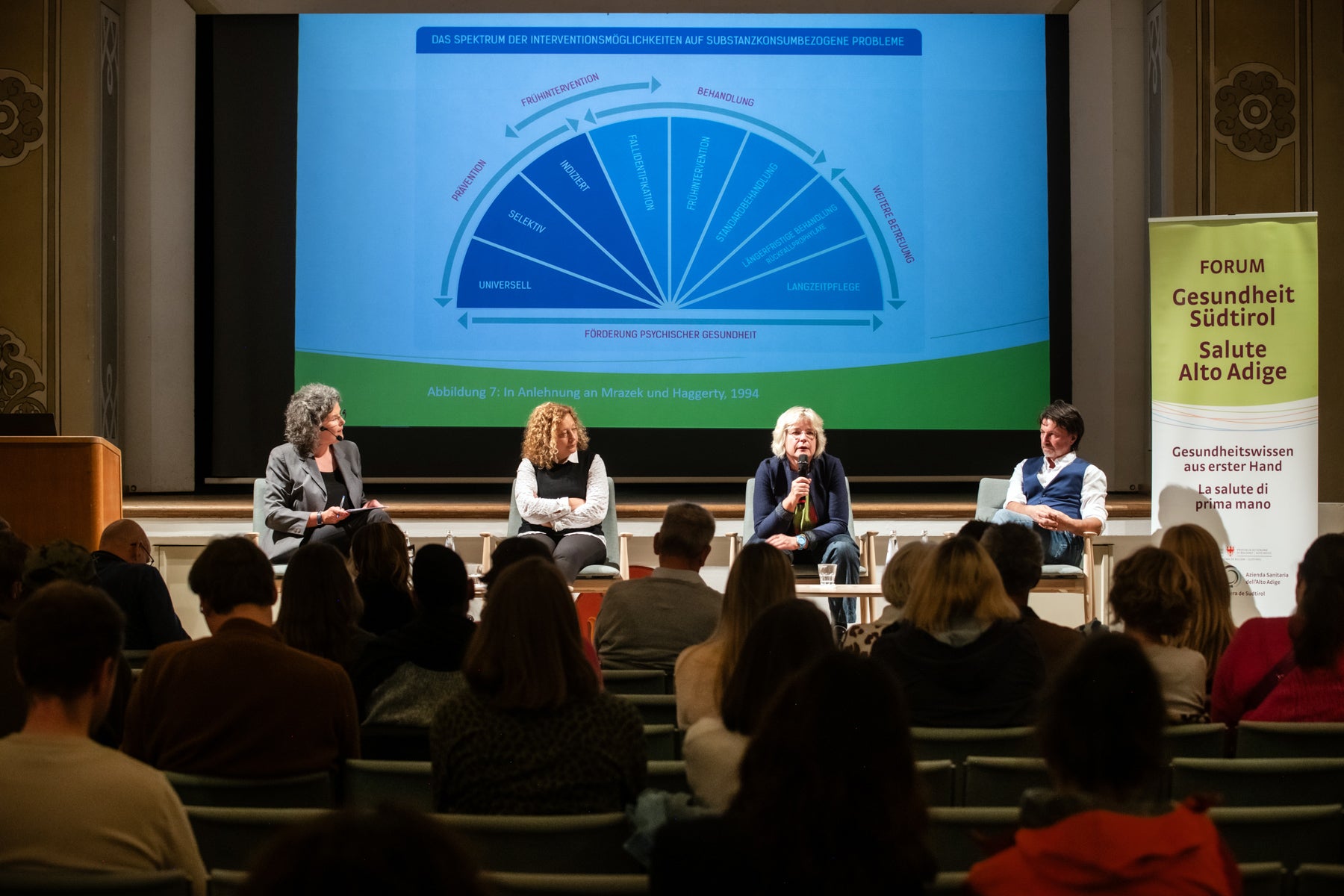 Beim anschließenden Rundtischgespräch, an dem auch Patrizia Corazza teilnahm, wurde betont, dass Prävention individuell und lebensnah gestaltet werden müsse. Sucht beginne nicht nur mit Substanzen, sondern auch mit Verhaltensmustern – etwa bei übermäßigem Smartphone-Gebrauch, der Jagd nach Klicks oder beim Konsum von Energydrinks. Die Klüfte zwischen den Altersgruppen erscheinen oftmals groß, was die Vermittlung von Präventionsarbeit erschwere, wie ein Jugendarbeiter zur Diskussion bringt. Dennoch könne durch eine gewisse Vorbildfunktion viel erreicht werden, wie Fronthaler argumentiert – „auch kleine Erfolge, die man erreicht, wenn man mit Jugendlichen auf der Straße spricht, sind zielführend!“