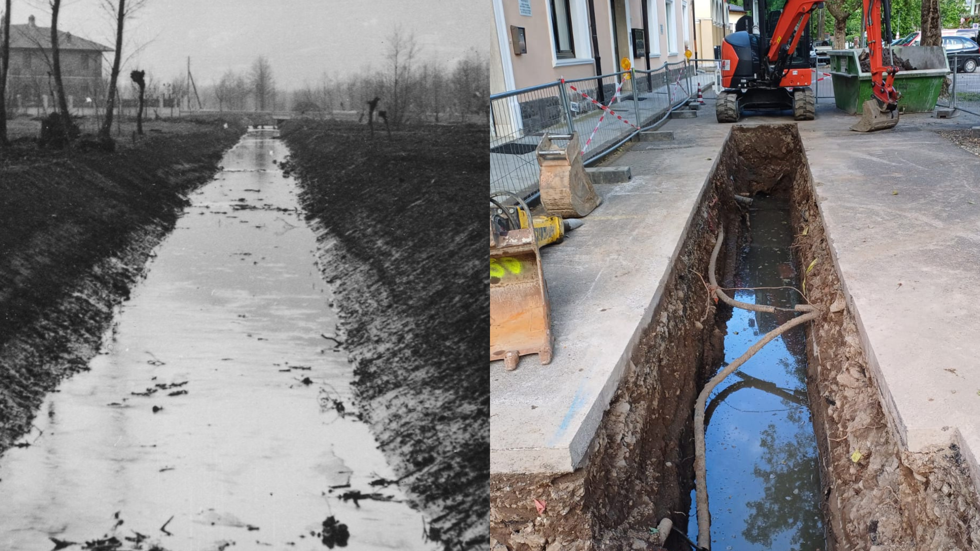 Dabei ist der Kanal nur einer von vielen, die allesamt dieselbe Funktion erfüllten: Wasser aufnehmen, abführen und den Grundwasserspiegel niedrig halten. „Damit ein solcher Drainage-Kanal funktioniert, muss er offen sein“, erklärt Fabrizio Nicolini, der in Sinich geboren und aufgewachsen ist und noch genau weiß, wie breit und tief der Graben einmal war. Heute ist ein rund 300 Meter langes Teilstück verrohrt – und damit praktisch wirkungslos. Das Grundwasser gelangt gar nicht mehr in den Kanal, sondern staut sich unterirdisch, direkt unter dem Ortskern und den angrenzenden Gebäuden bis hin zu den südlicheren Siedlungen Sinichs nahe des Fußballplatzes an der Enrico-Fermi-Straße.
