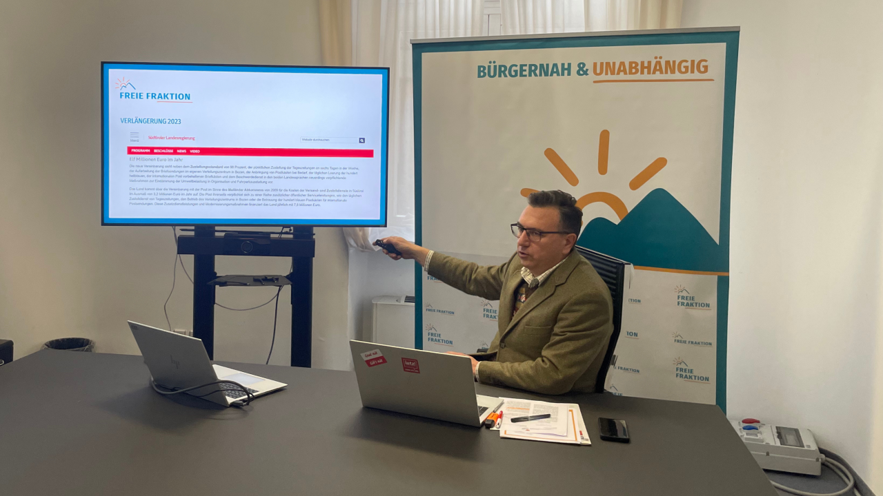 Verspätete Zeitungen, unregelmäßige Zustellungen von Briefen und personelle Engpässe prägen großteils den Alltag mit der Post in Südtirol, so der Landtagsabgeordnete Andreas Leiter Reber (Freie Fraktion). Was die Dienstleistungsqualität der Post in Südtirol betrifft, sei noch deutlich Luft nach oben – vor allem wenn man die jährlichen Landesfinanzierungen in Höhe von 11 Millionen Euro bedenkt. Der Anlass, diese seit Jahren bestehenden Probleme erneut aufzugreifen, ist das Fristende des Abkommens zwischen dem Land Südtirol und Poste Italiane Spa und die damit einhergehenden Neuverhandlungen.