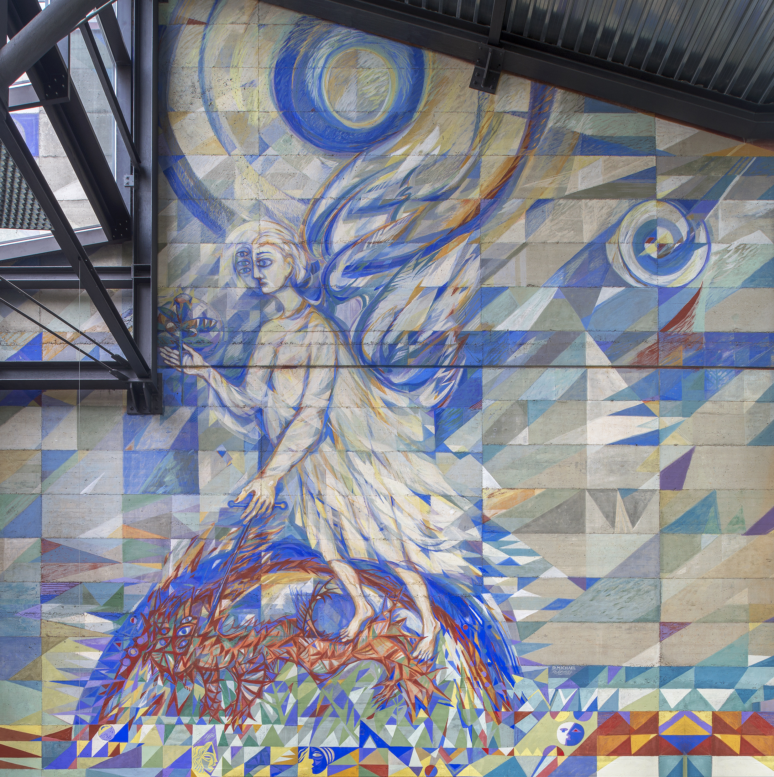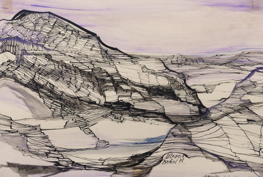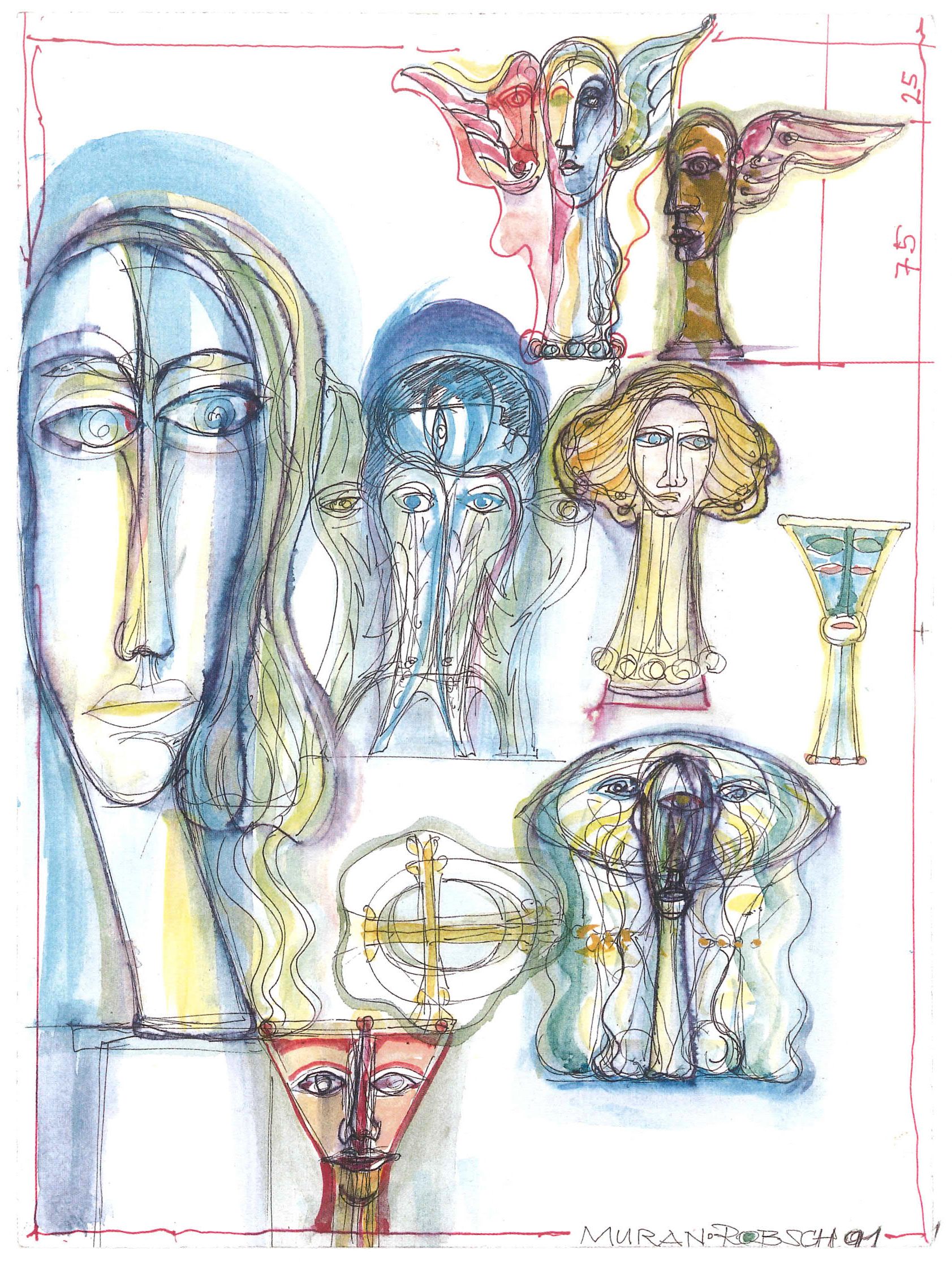In Buñol in Spanien: Natur- und Kulturlandschaften umgesetzt in Skizzen, Zeichnungen und Zyklen. Foto: Sammlung Eccel Kreuzer„Fließende, sich überschneidende Linien, kräftige Farbgebung und phantastisch-surreale Grundstimmungen" betont der Kunsthistoriker Carl Kraus „mit diesen, von der Wiener Ausbildungszeit mitbestimmenden Ansätzen hat Robert Scherer die Südtiroler Kunstszene nach 1945 entscheidend mitgeprägt und dabei wie kaum ein anderer ein vielgestaltiges Werk vom Tafelbild und Fresko und zur Glasskulptur hinterlassen."