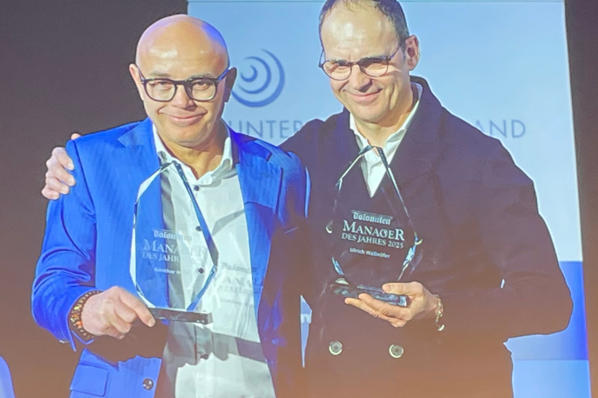 Nach der Rede standen traditionell auch Auszeichnungen auf dem Programm. Zu Managern des Jahres 2025 wurden Ulrich Wallnöfer und Günther Hölzl ausgezeichnet, die mit PUR Südtirol, dem Meraner Weinhaus und Naturalia ein hybrides Handels- und Gastronomiekonzept aufgebaut haben. Regionalität, Bio-Produkte, Kooperation und Gemeinwohlökonomie stehen im Zentrum ihres unternehmerischen Ansatzes, der auf maßvolles Wachstum und enge Zusammenarbeit mit lokalen Produzentinnen und Produzenten setzt.