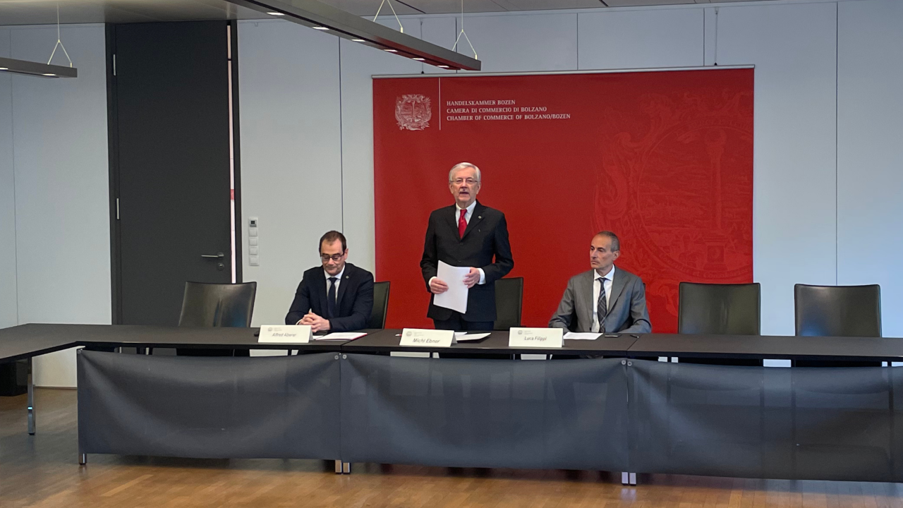 Die Weltlage ist angespannt – und das macht sich auch in Südtirol bemerkbar. Handelskonflikte, geopolitische Krisen und eine gedämpfte Konjunktur in den wichtigsten Exportmärkten erschweren die wirtschaftliche Planung. Dennoch will die Handelskammer für 2026 mehr „Internationalisierung“. Es sollen also so viele Unternehmen wie möglich an den Export herangeführt werden, wie der Generalsekretär der Handelskammer, Alfred Aberer, bei der heutigen Vorstellung des Jahresprogramms der Handelskammer erklärt.