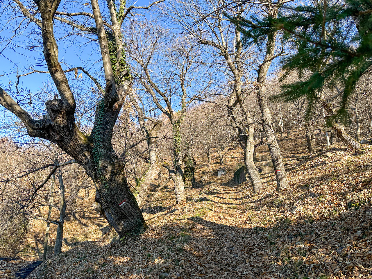 Schwierigkeit: mittel, steiler An- und Abstieg, auf den Wegen liegt Laub.
