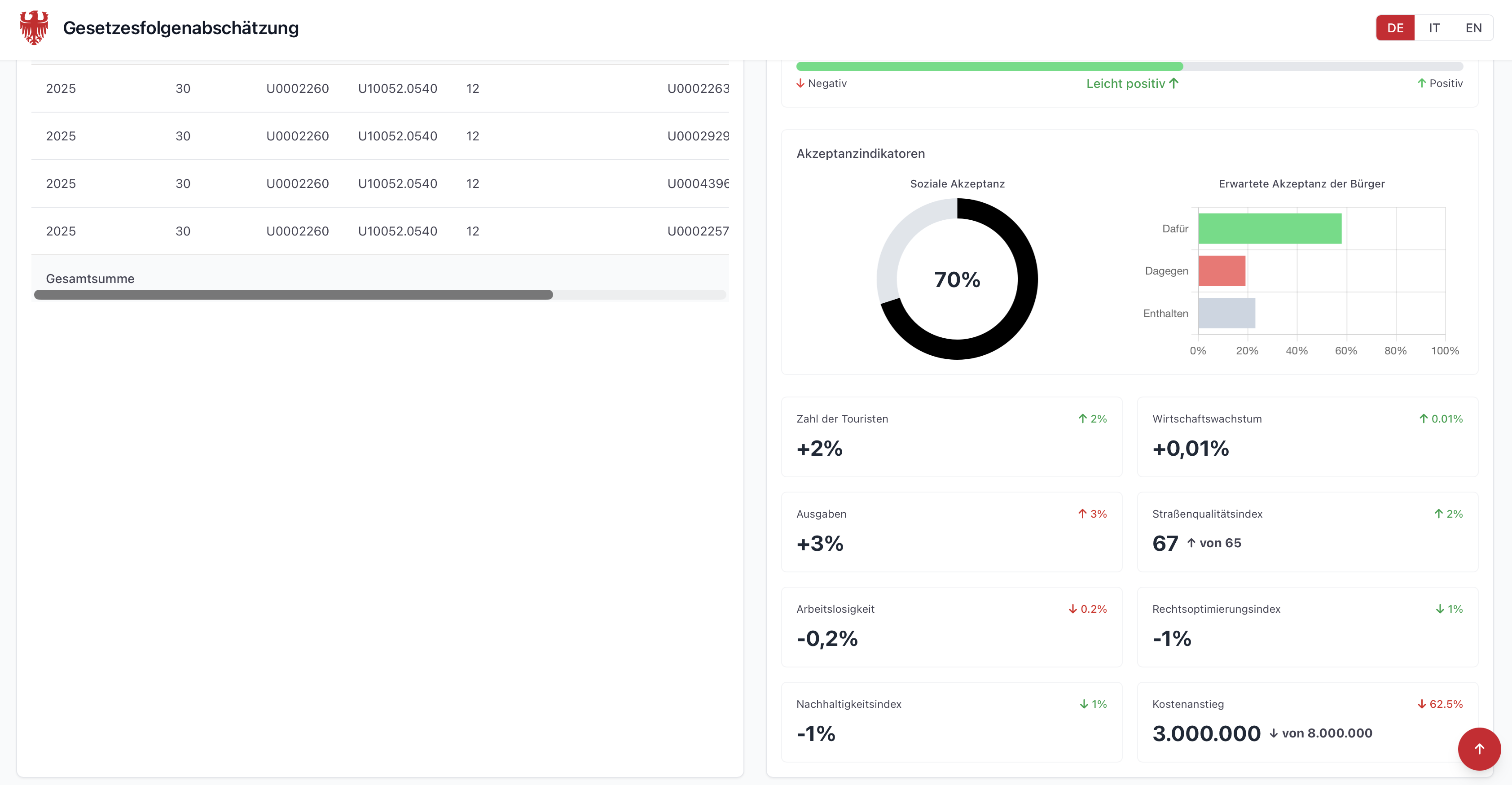In einem weiteren Schritt soll die Folgenabschätzung von Gesetzen mithilfe von KI eingesetzt werden – dafür braucht es aber auch zusätzliche Datenquellen. „Hier stehen wir noch am Anfang, aber das Beispiel der Straßeninstandhaltung in Südtirol zeigt, wie groß das Potential der KI in der Gesetzesfolgenabschätzung ist“, erklärt Gasslitter.