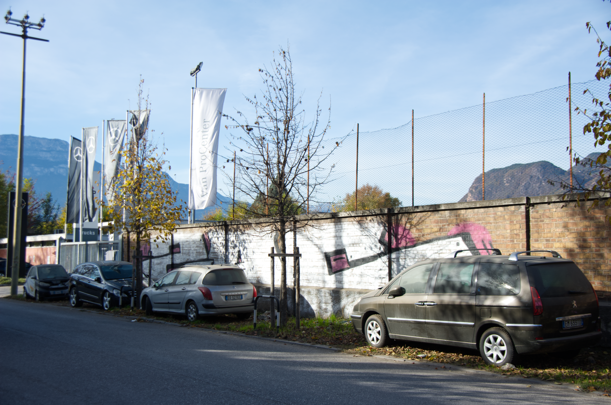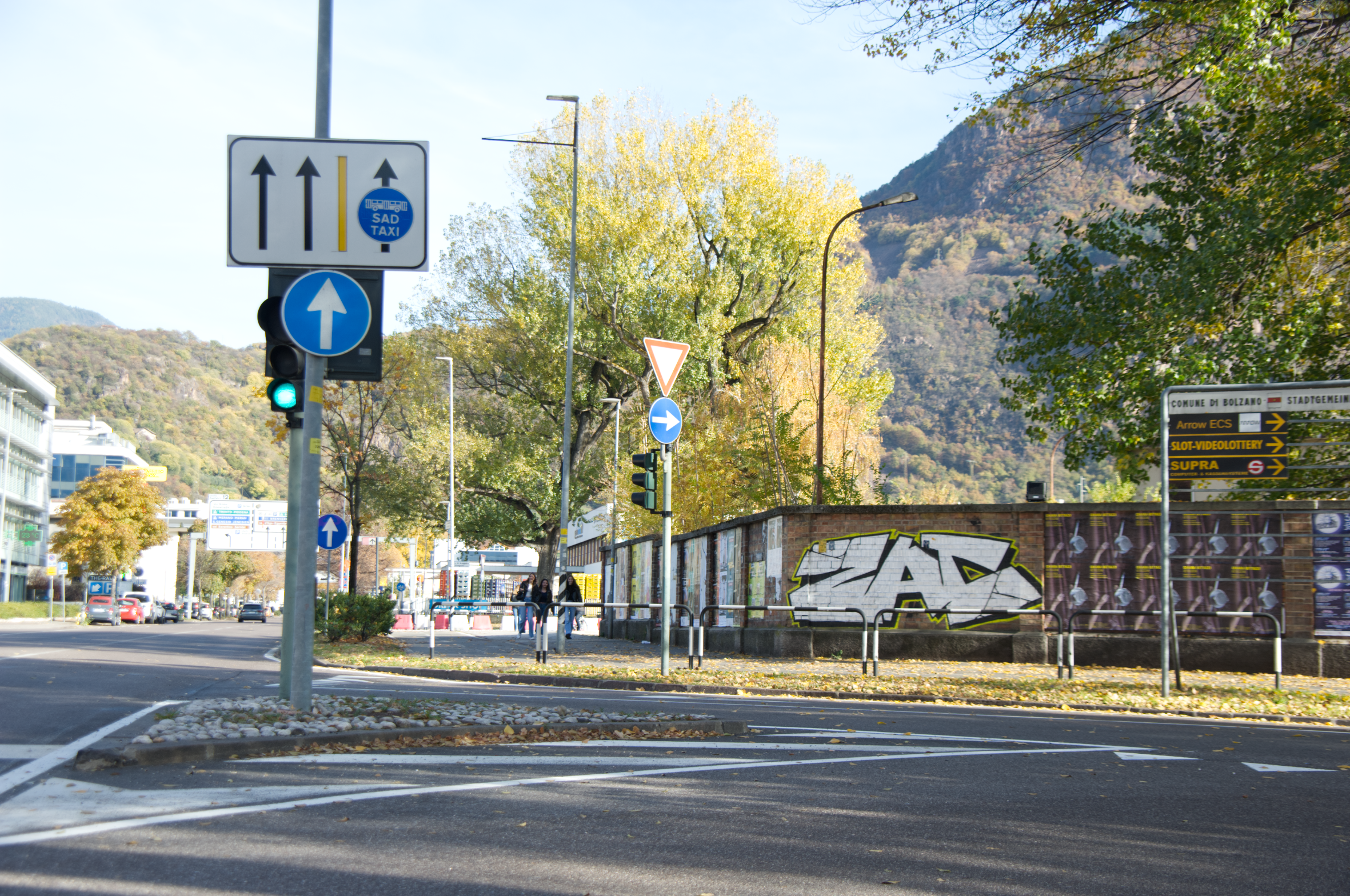 Getriggert von der Anzahl, haben wir uns einer Challenge gestellt: Innerhalb von zwei, drei Stunden, also während eines einzigen Giro‘s durch Bozen, wollten wir mindestens zehn Zac-Graffiti für salto.music fotografieren. Von einigen wussten wir, wo wir sie finden würden, andere sollten wir während der Runde hoffentlich entdecken.