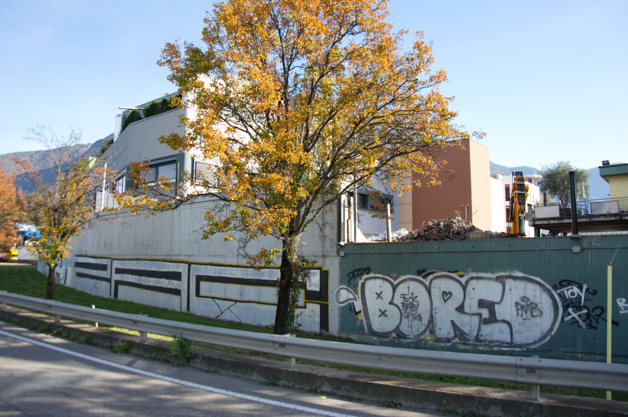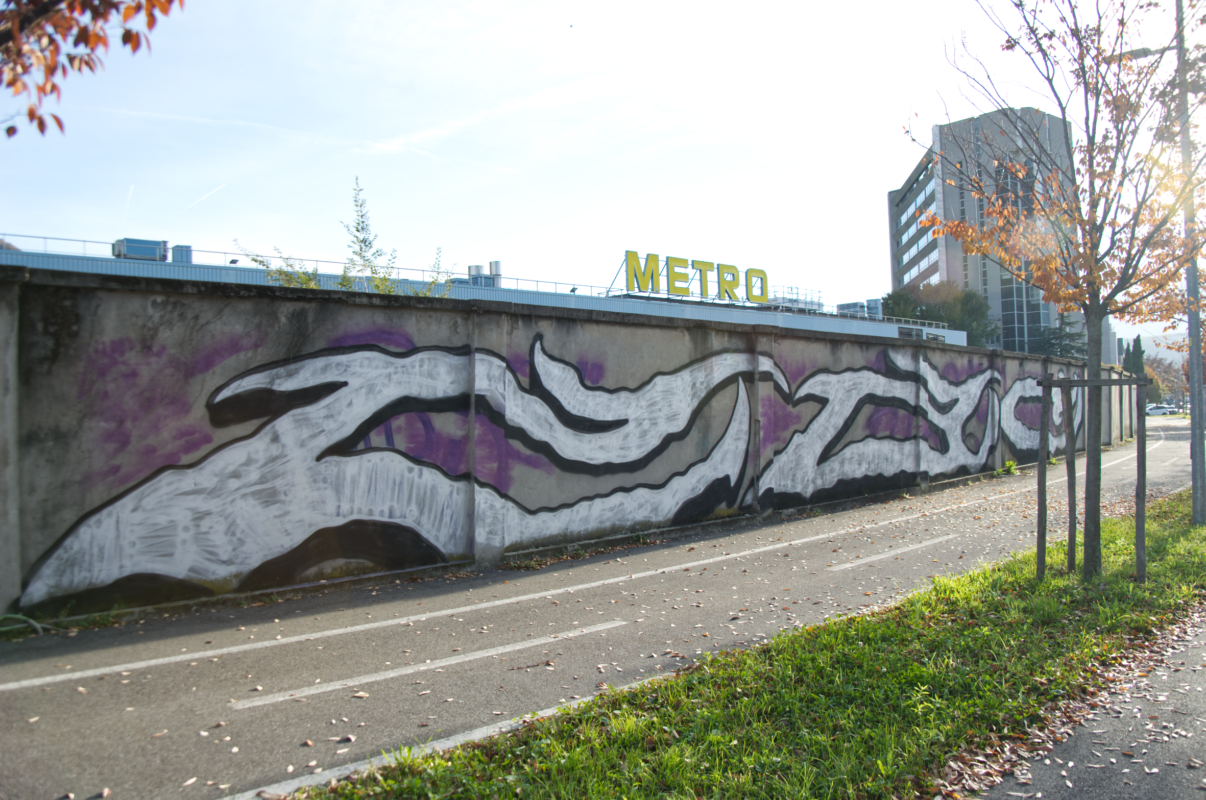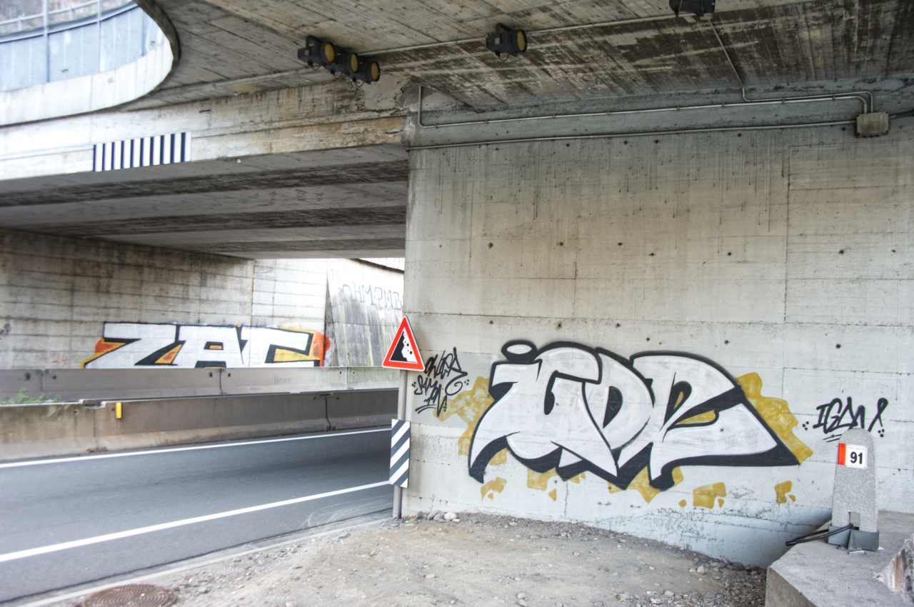 Seit ein, zwei Jahren ist uns ein ähnlich aktiver Sprayer aufgefallen: Zac!Seinen Schriftzug findet man vor allen in der Industriezone Bozen Süd, aber hin und wieder auch außerhalb.