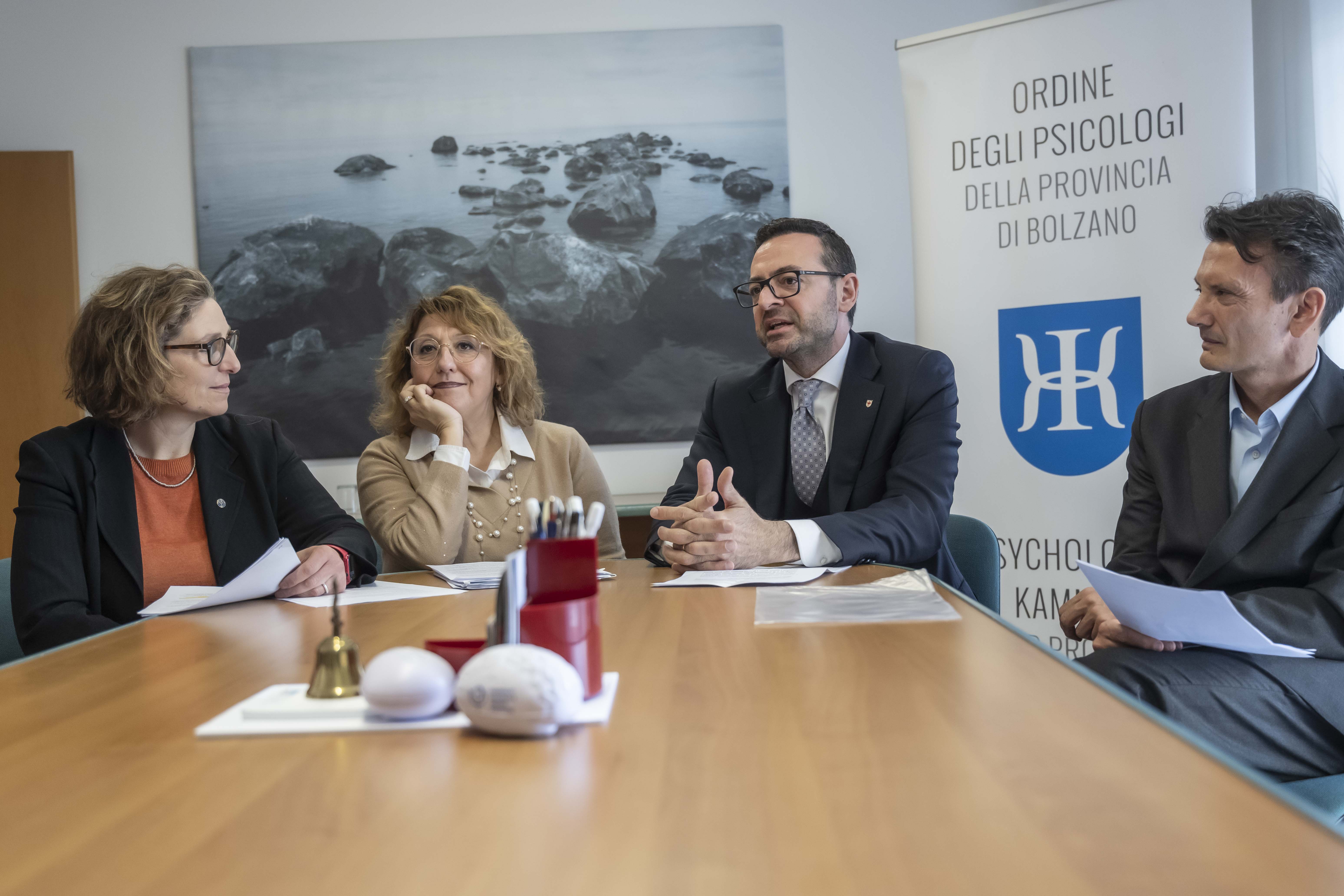 An den italienischen Bildungseinrichtungen in Südtirol sind schon seit mehr als 20 Jahren Schulpsychologinnen im Einsatz, im Jahr werden 3.500 Gespräche geführt. Der Dienst „…Parliamone“ trägt damit dazu bei, die Stigmatisierung rund um das Thema psychische Gesundheit abzubauen. Auch bei Erwachsenen ist der Bedarf groß, wie lange Wartelisten auf Therapieplätze zeigen. „Unsere Gesellschaft ist komplexer geworden. Wir müssen miteinander reden und uns zuhören“, sagt auch Marco Galateo, Vize-Landeshauptmann und Landesrat für italienische Bildung, im Sitz der Psychologenkammer.