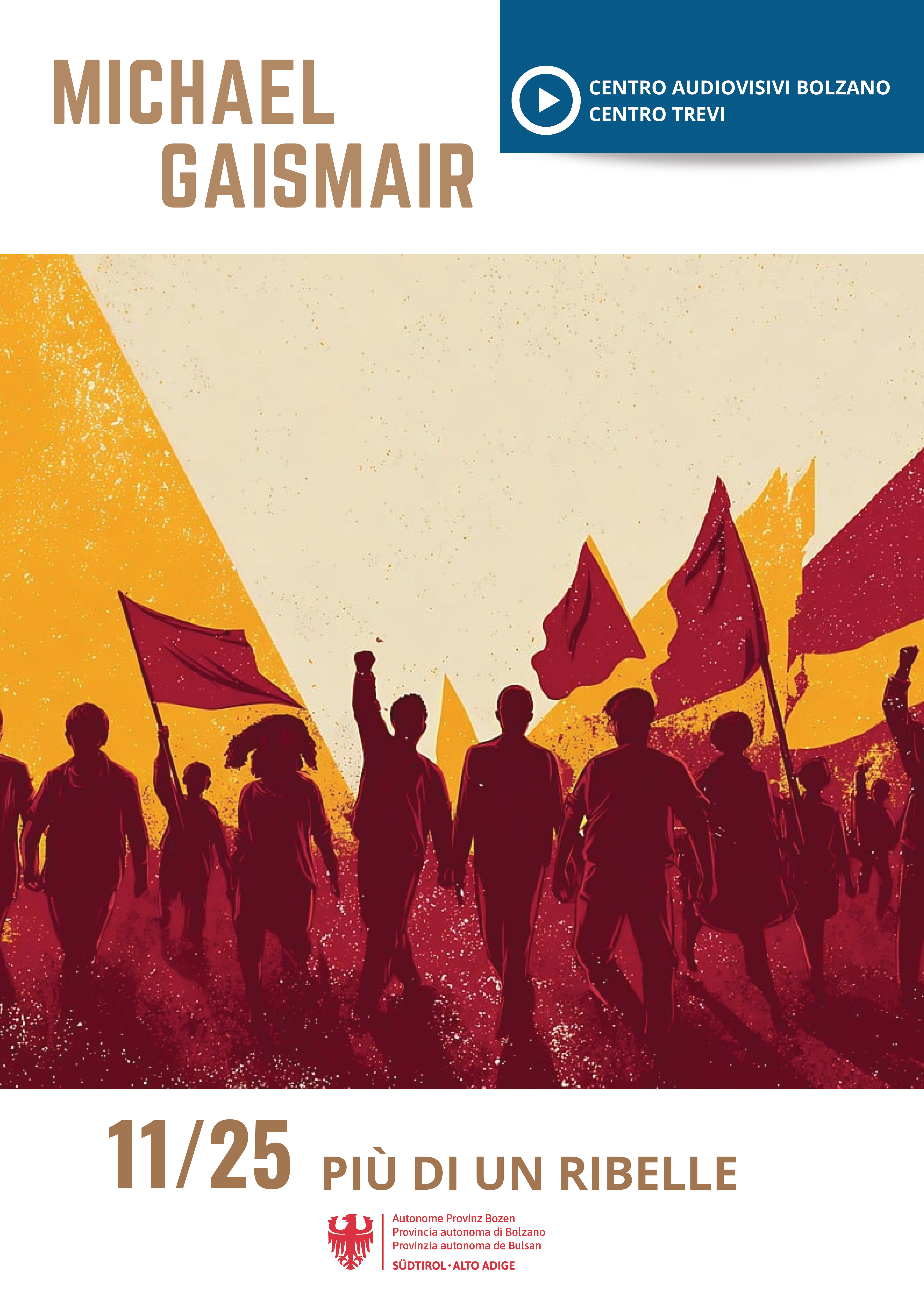 La Ripartizione Cultura italiana promuove le produzioni audiovisive e contribuisce alla memoria del territorio con l’archivio del Centro Audiovisivi dell’Ufficio Educazione permanente, biblioteche e audiovisivi che racconta il ruolo di una comunità all’interno di questa provincia. A novembre viene presentato il documentario storico dedicato alla figura di MICHAEL GAISMAYR (2023) diretto da Wolfgang Moser e prodotto da Mowo Production.