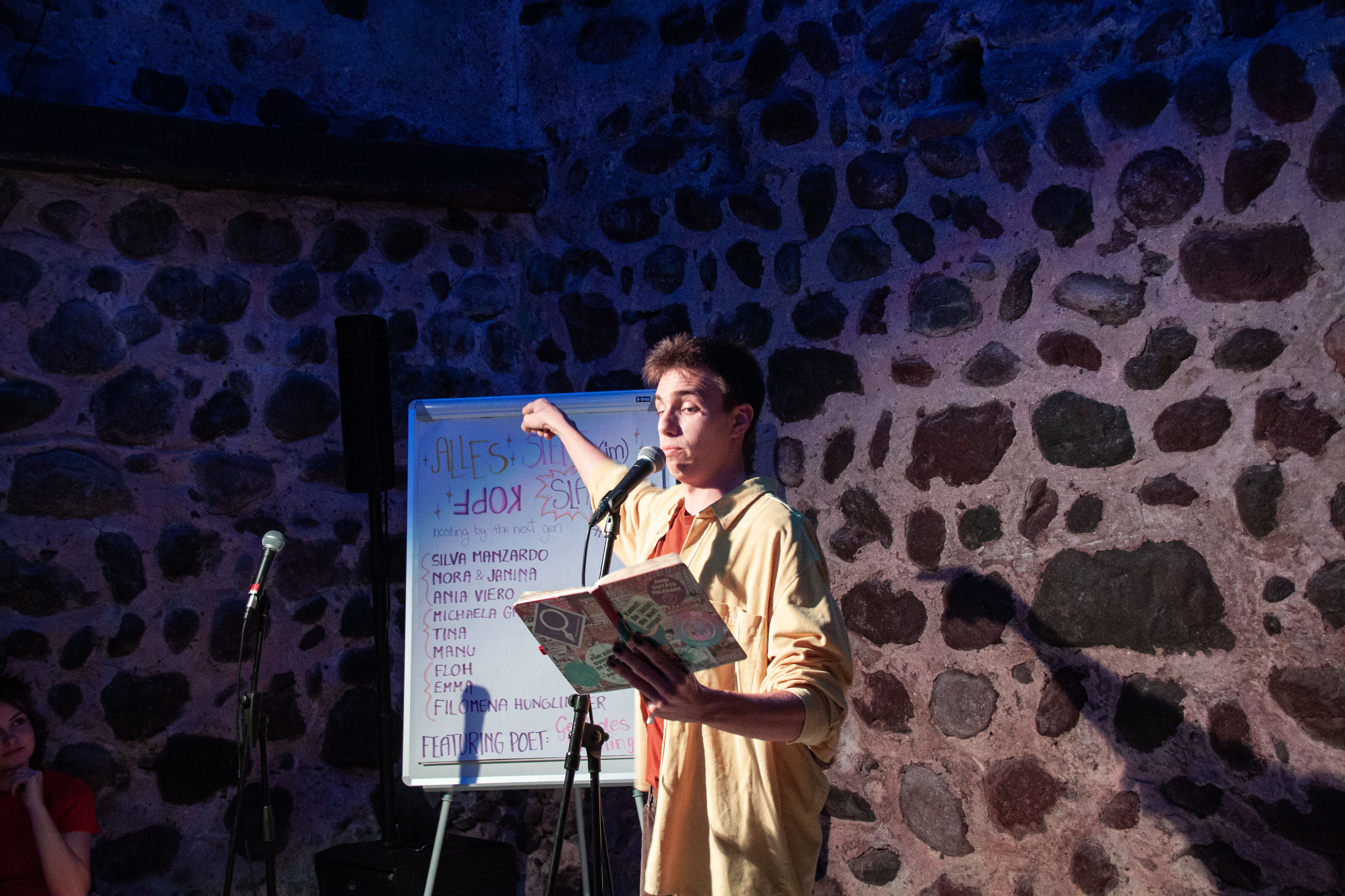 Entwicklung der „Slamily“In den vergangenen drei Jahren hat sich der WAAG Slam als feste Größe etabliert, ohne seinen intimen Charakter zu verlieren. Er fungiert als Trainingsbühne, auf der die Zeit eher gefühlt als exakt gestoppt wird. Lene Morgenstern blickt auf die lokale Szene „Die Gemeinschaft ist zusammengewachsen und die Multilingualität hat sich fest etabliert. Wir fördern Neuzugänge und die Vernetzung durch internationale Gäste. Im Vordergrund steht ein freundschaftliches Miteinander, nicht der Leistungsdruck.“ Am Ende kürt das Publikum zwar eine Siegerin oder einen Sieger, doch durch das Tauschkonzept gewinnen letztlich alle Teilnehmenden.
