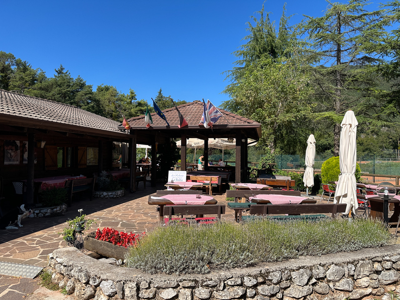 Viel Platz, Tische im Freien und in der weitläufigen Holzkonstruktion und Veranda. Pizza & Pasta. Beim Tennis Center Lago Di Garda. Via Dalco, 3, 25010 Tremosine sul Garda BS, Tel. 0365 918012