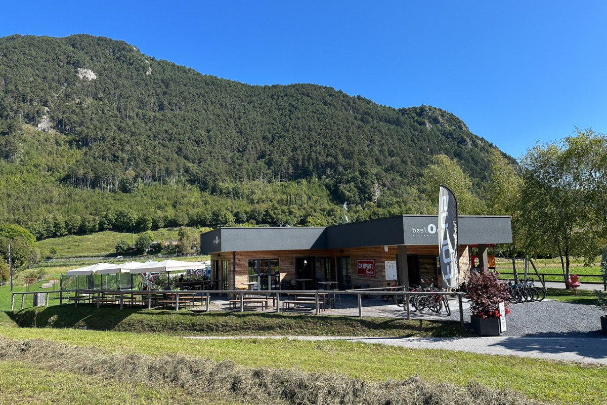 BestOneRadverleih, Bar, Restaurant. Kaffee, Kuchen, kleine Gerichte, Aperitifs. Gartenterrasse, moderne, geschmackvolle Einrichtung, freundliches Personal. Kinderspielplatz. Hinter dem Haus Brunnen mit gekühltem Wasser und prickelndem Mineralwasser, alles kostenlos! Via Luigi Einaudi !/B Via IV Novembre, Tel. 392 848 2979