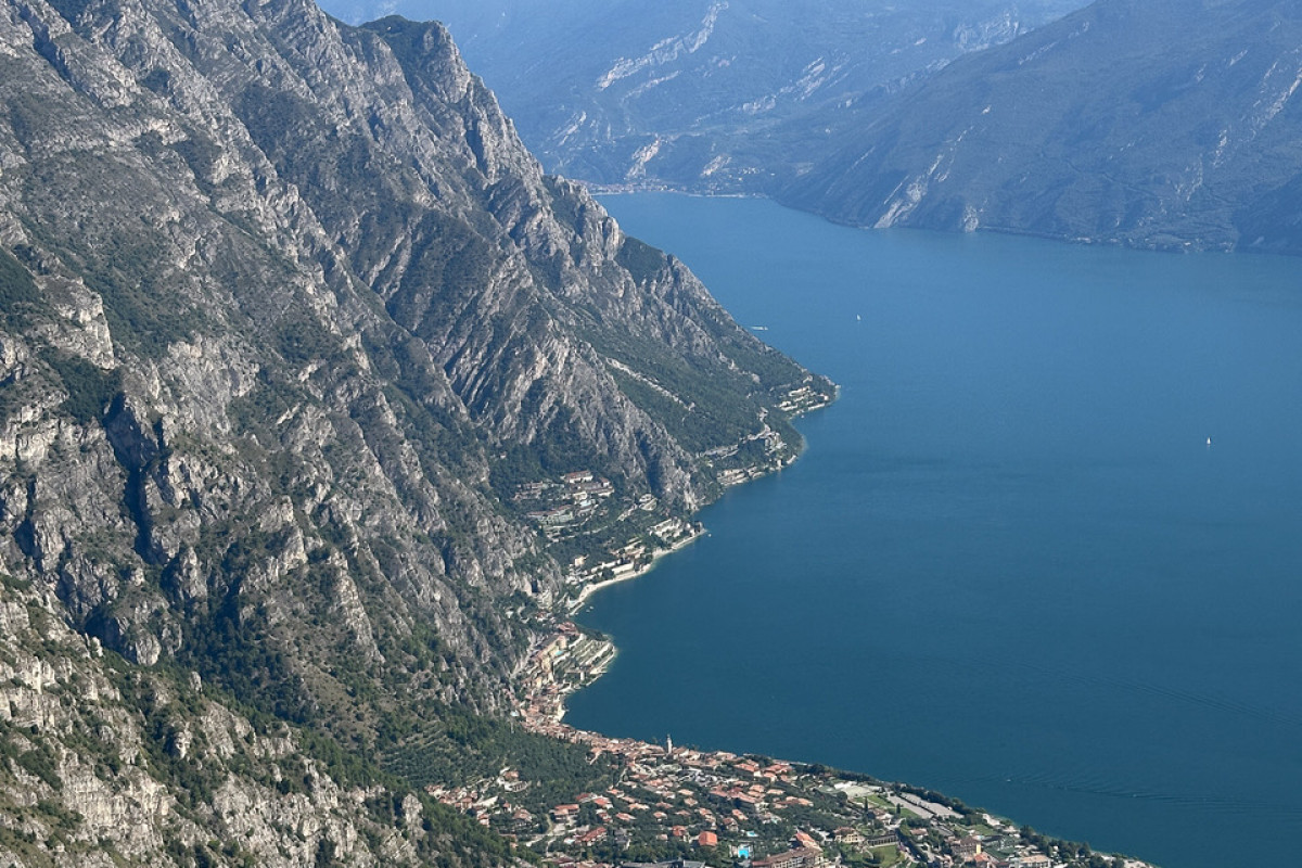 Wir gehen ins Hinterland bei Tremosine am westliche Ufer, in eine zerklüftete Berglandschaft. Den See erblicken wir in der Tiefe, unter uns liegt Limone, am Ostufer schmiegt sich Malcensine an den Monte Baldo und im Nordosten erahnen wir Riva und Torbole. Unser Ziel ist ein ungemein lohnender, eifacher Gipfel, der Monte Bestone, mit gerade einmal 917 m.