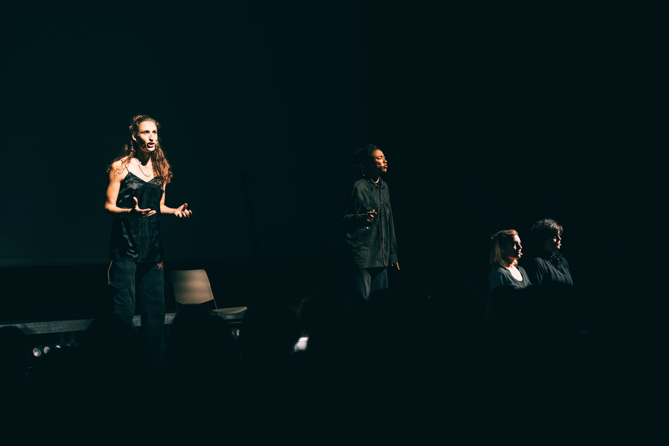 Spoken Word Performance basierend auf Texten von Eeva Aichner, Iris Omari Ansong, Alba Becker, Lene Morgenstern, Ines Visintainer, Yasmo – Text-Collage zusammengestelllt von Nora Dejaco;