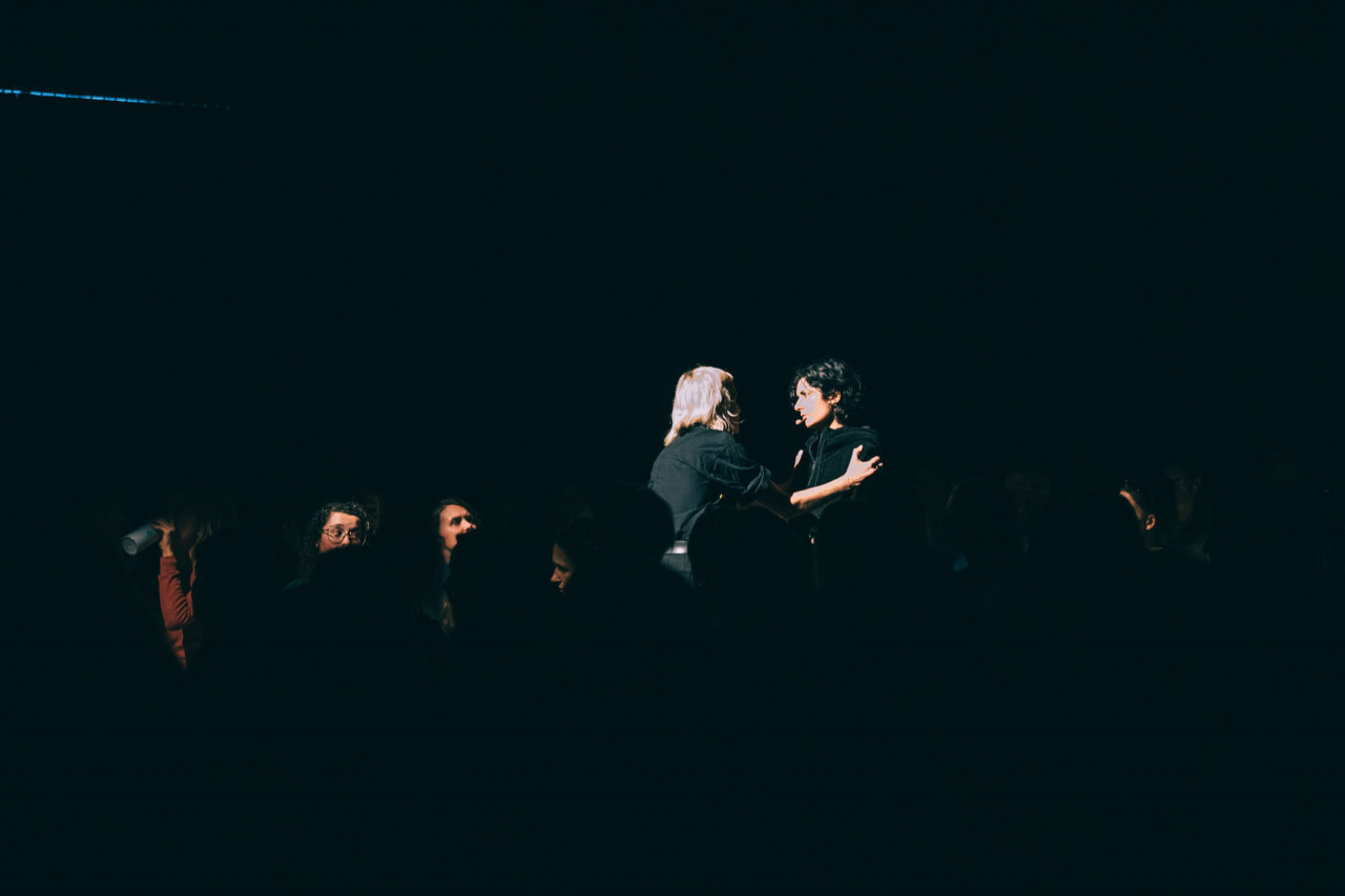 In einer zeitbestimmten Welt, in der zeitgleich so unterschiedliche Realitäten zwischen Arm und Reich oder Jung und Alt gelebt werden, laufen wir Gefahr, ein gemeinsames Verständnis eben dieser Welt zu verlieren. „In unserem Text haben wir die Frage behandelt, inwieweit ich mit meinen Werten in einer Diskussion alleine dastehe. Schließlich könnte eine kontroverse Meinung beispielsweise den eigenen Job kosten“, erklärt Alba Jona Becker, die mit Iris Omari Ansong einen Text für die Performance ausgearbeitet hat und ebenfalls auf der Bühne stand. Angesichts von Rechtsruck und Polarisierung sei es wichtig, den Austausch mit Menschen zu suchen, die nicht der eigenen Meinung sind. „Systeme, auch zwischen Menschen, kritisch zu hinterfragen, dranzubleiben – und dabei achtsam im Umgang miteinander zu bleiben, ist eine große Aufgabe für uns alle.”