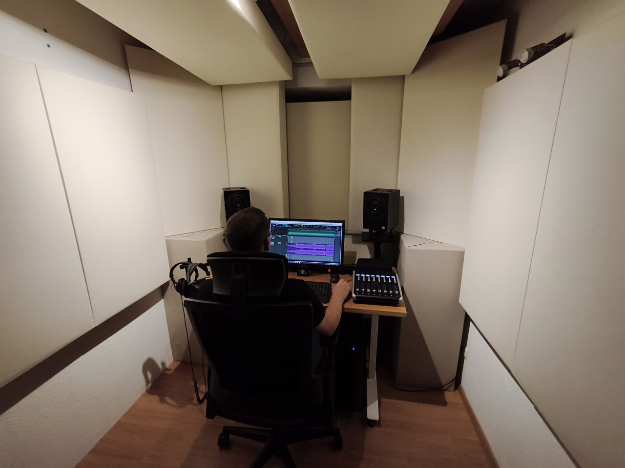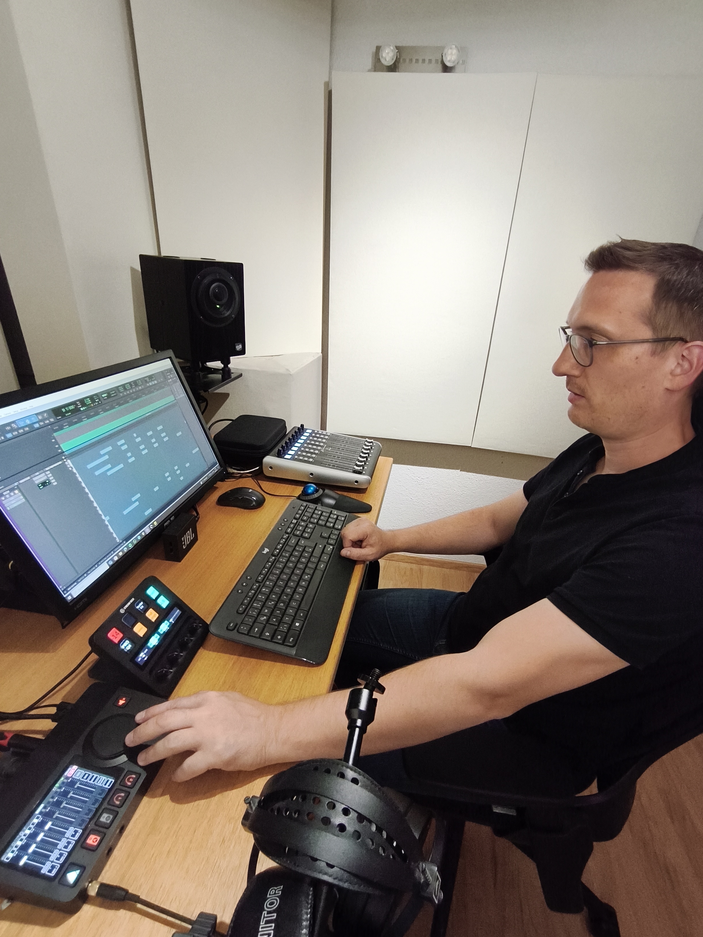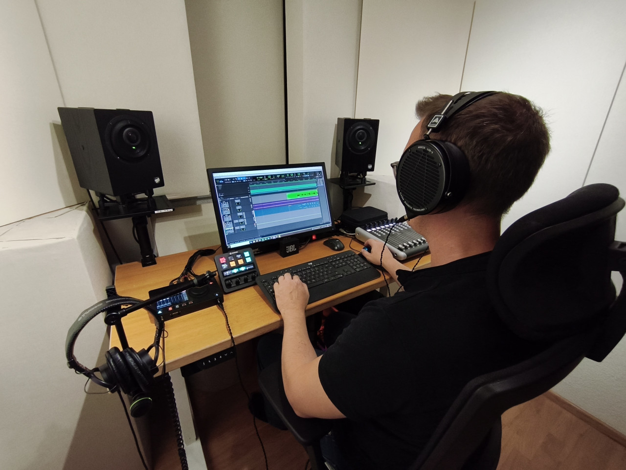 Der Knackpunkt kam eigentlich in der Corona-Zeit: der Bedarf stieg gefühlt exponentiell an und ich konnte das Aufnehmen perfekt mit meiner Arbeit als Instrumentallehrer durch Projekte mit Schülerinnen und Schülern verbinden. An diesem Punkt habe ich mich auch entschlossen, eine Fernschule zu absolvieren und mich noch intensiver durch Workshops und Masterclasses weiterzubilden.