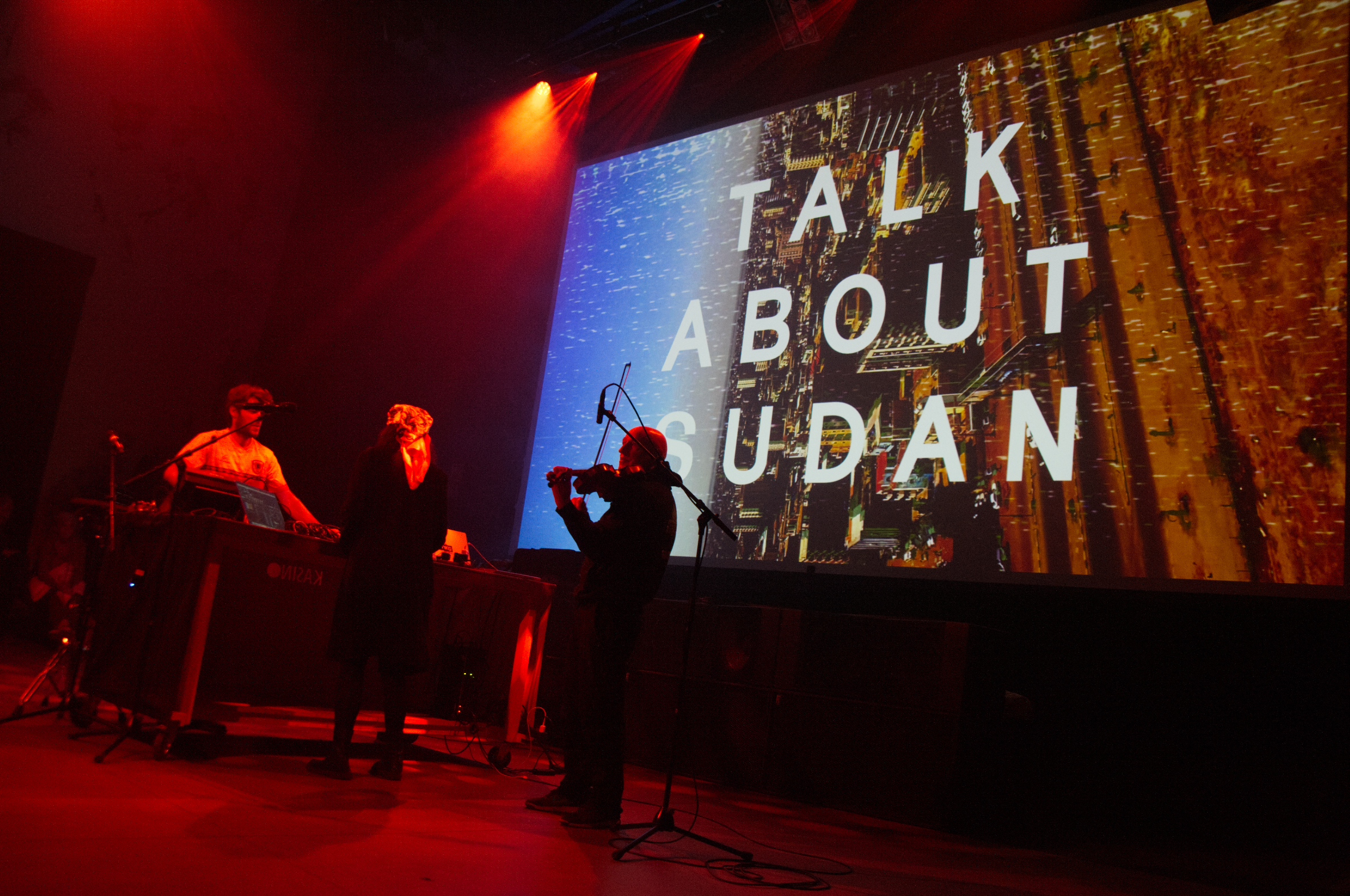 Die Visuals waren sehr stark, ob es sich dabei nun um Handy-Aufnahmen aus den besagten Krisengebieten handelte, ob es abstrakte Flächen waren oder ob es sich um in die deutsche Sprache übersetzte Auszüge aus den Träumen von Guefif oder die Übersetzung verschiedener Sprachsamples handelte, sie gaben der bisweilen treibenden und dramatischen Musik Tiefe, machten diese zum perfekten Soundtrack der Erzählung der Stücke.