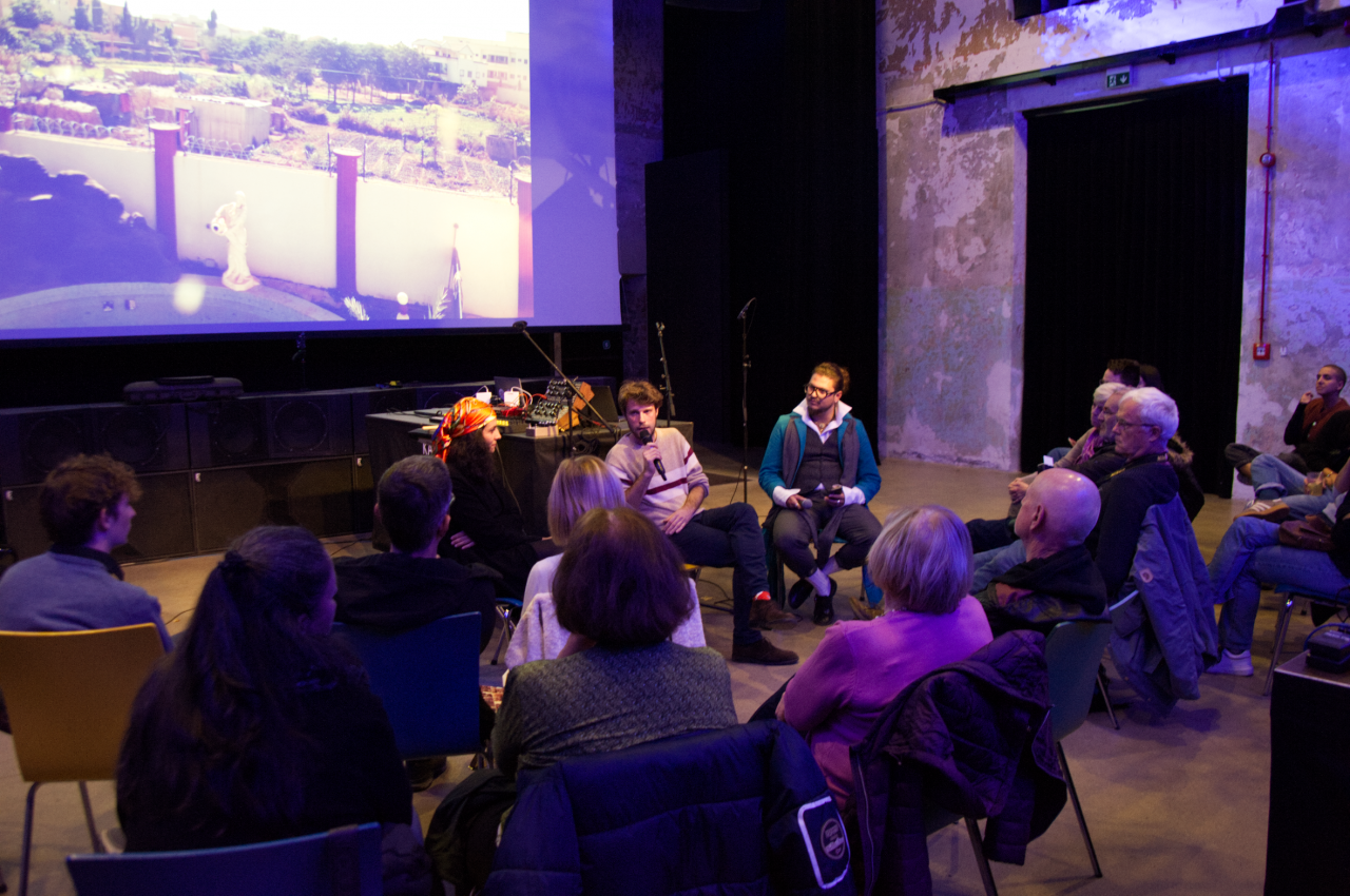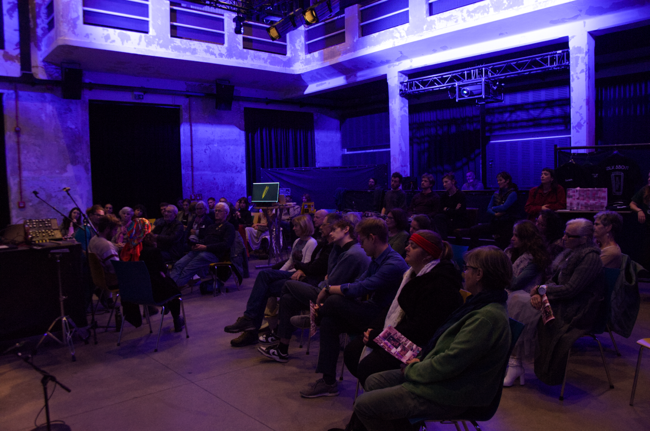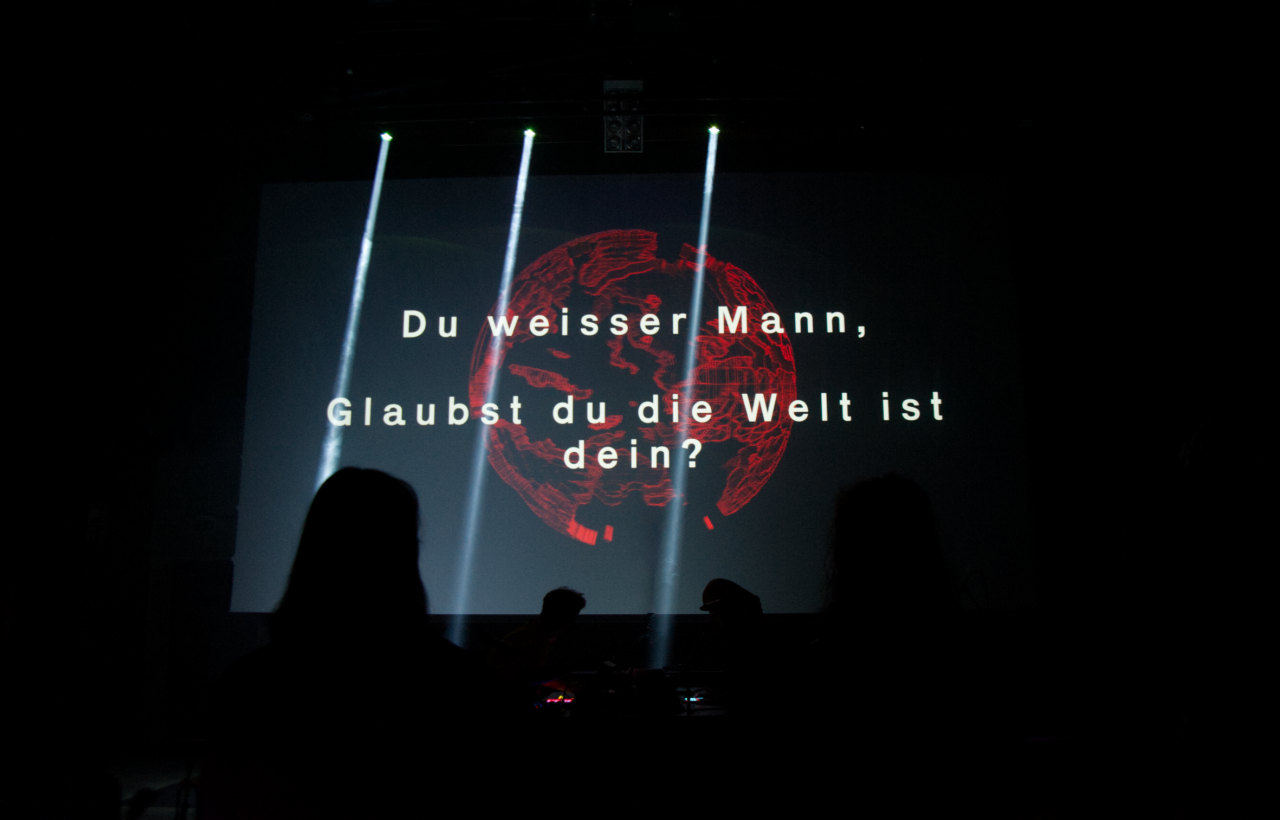 Casera und Guefif haben einen ganzheitlichen Zugang zu ihrer Kunst. Wie aus den bisher erschienenen Videos klar hervorgeht, ist die viduelles Seite des Projektes gleich wichtig wie die Musik und die Texte. Das sollte sich in der Live-Performance, die nach der Diskussion gegen 21 Uhr begann, auf allen Ebenen bestätigen.