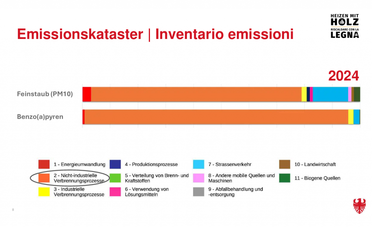 Laut den Daten aus dem Landesressort verursachen nicht-industrielle Verbrennungsprozesse wie bei Holzheizungen in Südtirol mehr am meisten Feinstaub. 49,3 Prozent von ihnen sind mehr als 20 Jahre alt. 38,5 Prozent der Heizungen erzeugen eine Wärmeleistung von weniger als 5 Kilowatt, ausreichend um ein einzelnes Zimmer aufzuwärmen. Der meist genutzte Brennstoff ist mit 85,3 Prozent eindeutig das Stückholz, es folgen Pellets, Hackschnitzel und Holzbriketts.