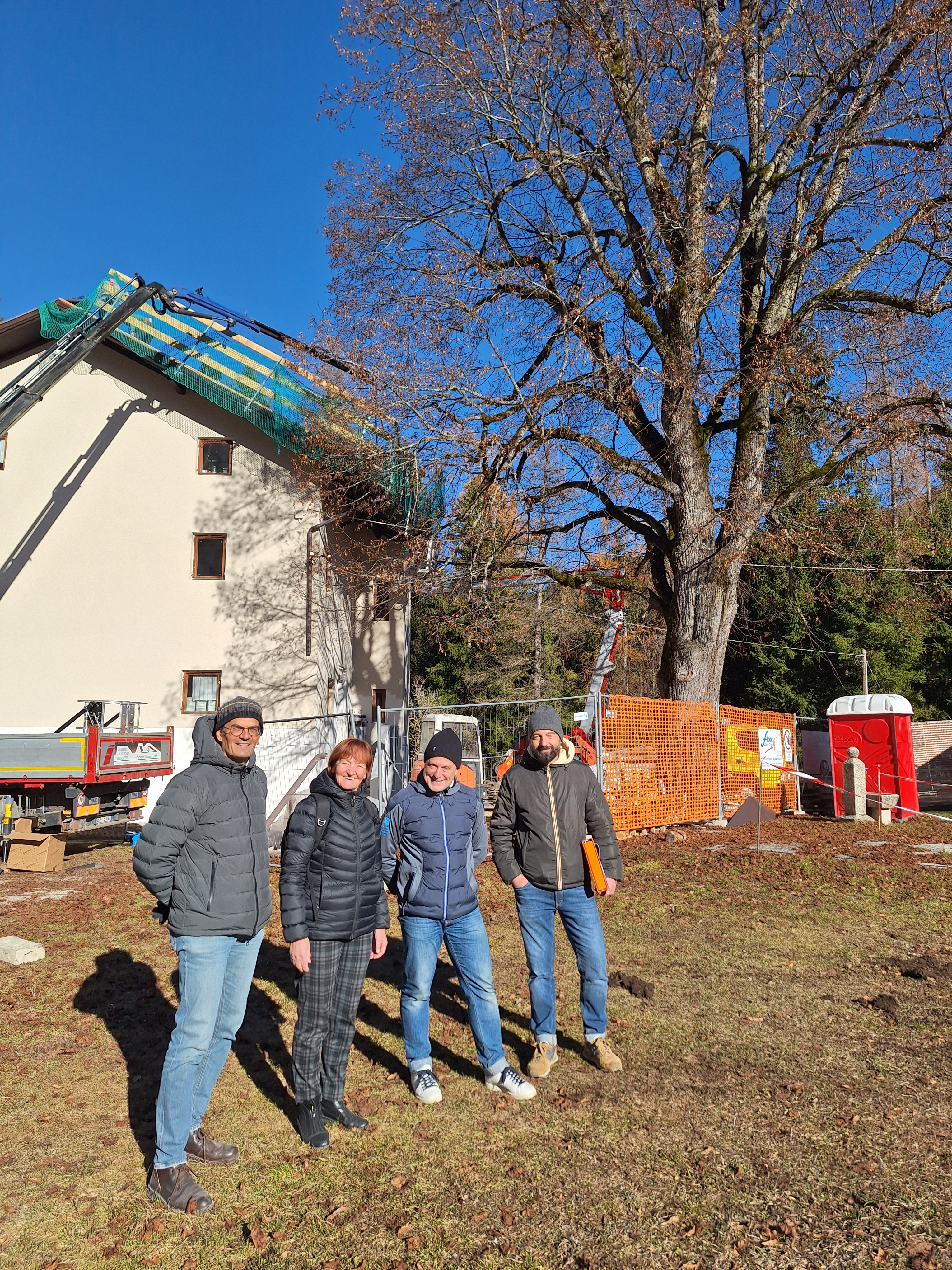 Im Rahmen eines Lokalaugenscheines konnten sich der Bürgermeister von Salurn, Roland Lazzeri, und Martha Stocker als Stiftungsratsmitglied der Stiftung Südtiroler Sparkasse vom Fortschritt der Sanierungsarbeiten überzeugen.