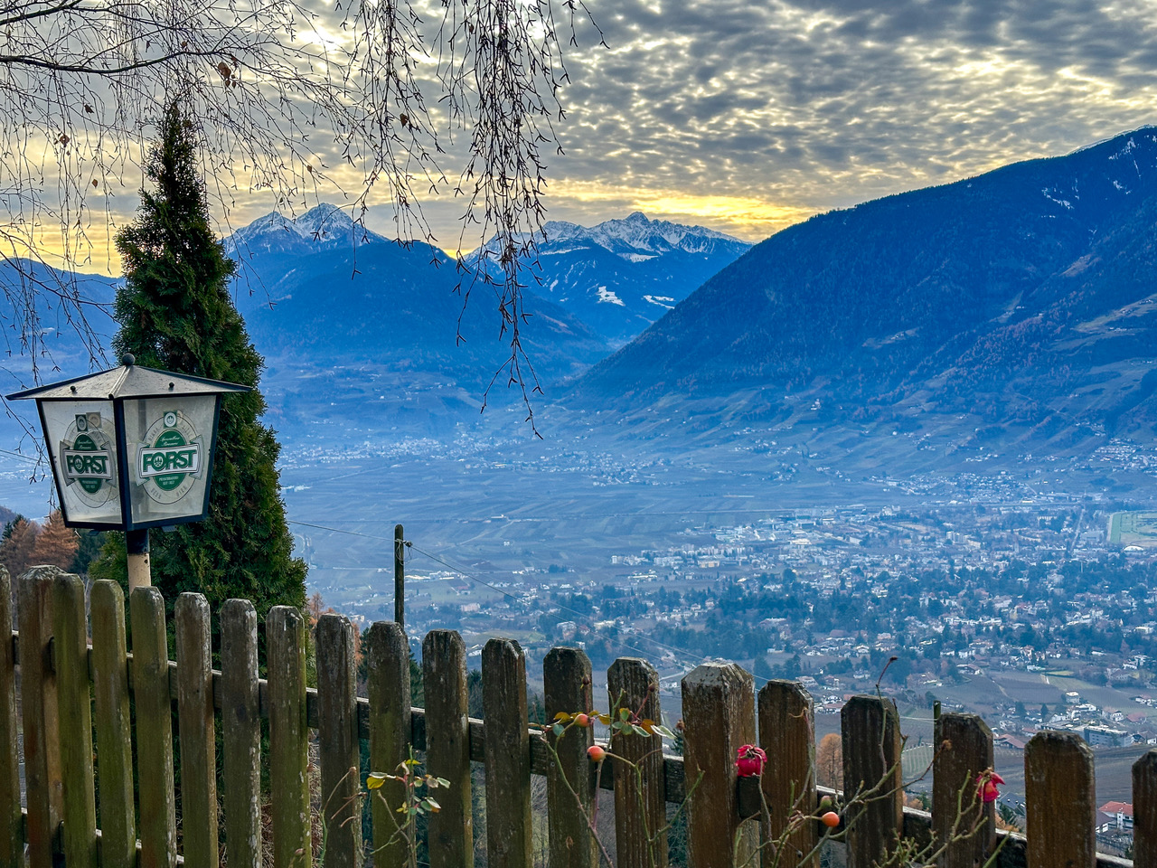 Ein Waalweg ist ein schmaler Wanderweg entlang eines Waales, also eines historischen Bewässerungskanals. Der Name "Waal", stammt wahrscheinlich vom lateinischen Wort "aqualis" (Wasserlauf) ab. Ursprünglich dienten die Waale dazu, Wasser aus Bergbächen über weite Strecken auf Felder und Obstwiesen zu leiten. Ursprünglich dienten die Waale dazu, Wasser aus Bergbächen über weite Strecken auf Felder und Obstwiesen zu leiten. Die Wege entlang des Waales entstanden zur Kontrolle und Instandhaltung dieser Kanäle. Heute sind Waalwege wichtige Kultur- und Landschaftsdenkmäler und beliebte Wanderwege, die durch sanftes Gelände führen, oft mit schönen Ausblicken und hohem Erlebniswert. Der Schenner Waalweg ist einer der beliebtesten und mit 10 km Länge einer der längsten Waalwege Südtirols, er bietet auf seinem Verlauf durch Obstwiesen, Weinreben und Wälder fantastische Blicke auf das Meraner Becken. Bei unserer Wanderung begehen wir den letzten Streckenabschnitt von der Taser Seilbahn bis zu den Obstwiesen oberhalb von Schloss Gojen bei Vernaun.