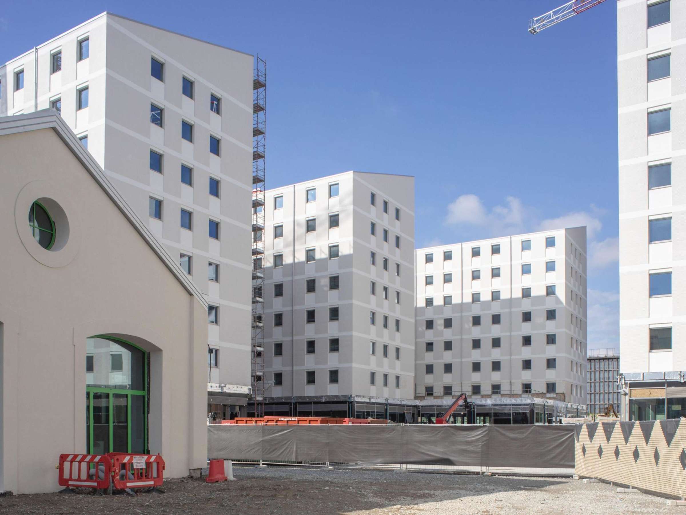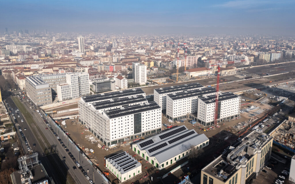 Zeigten die ersten Renderings aus Mailand noch einen Hauch von Konzept und Begeisterung für das Olympische Dorf, lässt der fertiggestellte Ist-Zustand selbst die plattenbauverwöhnten Regionen Osteuropas erblassen. Sechs triste, langgezogene und monotone Wohnblöcke mit endlosen Reihen gleichförmiger quadratischer Fensteröffnungen, deren einziger gestalterischer Akzent zwei über jeweils drei Blöcke gespannte Fluchtweganlagen sind. Keine Balkone, keine baulichen Verschattungen, keine Begrünung. Keine Abwechslung, keine Liebe zum Detail, keine ablesbaren Strukturen. Geschweige denn ein Hauch von Wohnlichkeit. Beim Anblick dieser Kolosse drängen sich die schlimmsten Studentenheim-Klischees der 1950er- und 60er-Jahre auf. Wie gebaute Klimaleugner stehen sie da – und verneinen alles, was im Bau- und Wohnsektor der letzten Jahre zum Common Sense geworden ist. Oder zeigen sie schlicht und ehrlich, wie es um den Mailänder Wohnbau seitdem Expo-Boom bestellt ist?