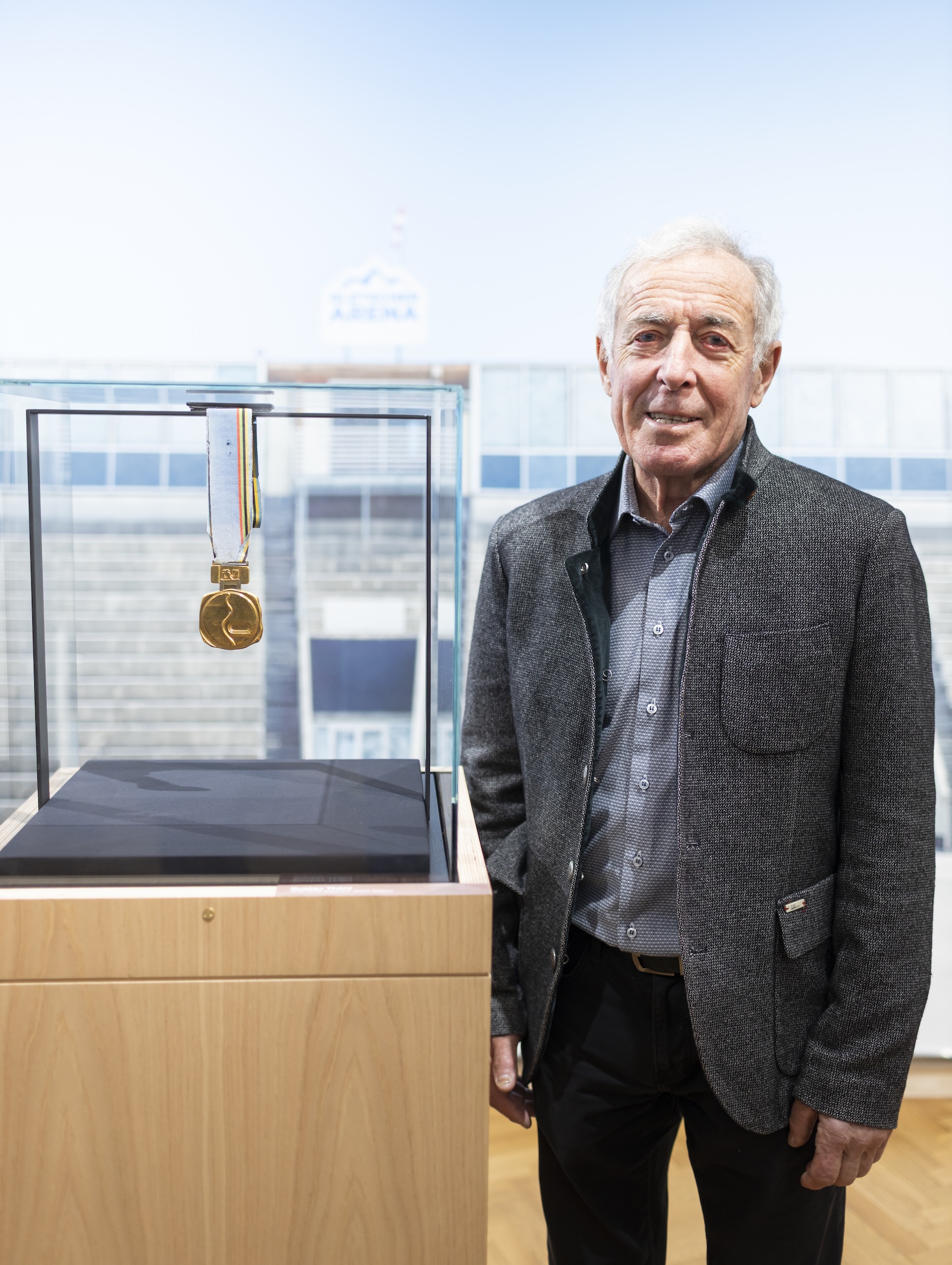 Gustav Thöni, der 1972 in Sapporo Gold im Riesenslalom sowie 1972 in Sapporo und Silber 1976 in Innsbruck im Slalom gewann, wird in der Arbeit von Leonhard Angerer durch den ikonischen Olympiaanzug als Symbol einer Wintersport-Ära sichtbar, die zugleich von der Herausforderung erzählt, diesen Sport unter veränderten klimatischen Bedingungen in die Zukunft zu führen.
