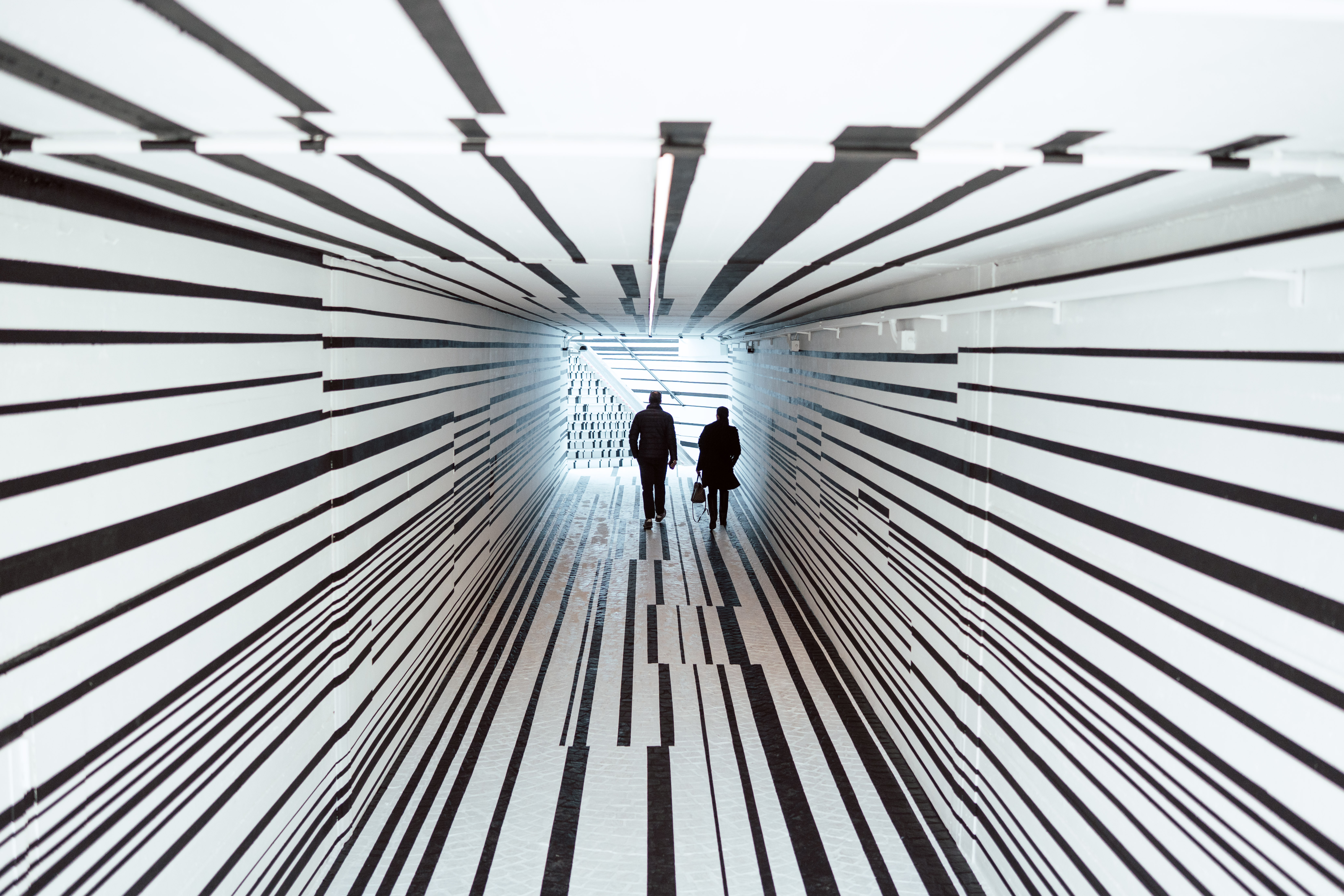 Die Idee der Gestaltung zu der Unterführung stammt aus der Zusammenarbeit der Gemeinde Trento mit der Galleria Civica, auch im Zuge eines größeren Stadterneuerungsprojektes. Da ich Orte der Transition, des Übergangs ganz besonders spannend finde, habe ich mich über diese Aufgabenstellung wirklich sehr gefreut. Ich finde das Menschsein selbst ist eine Metapher für den Übergang, und ich finde dass dieser Ort eine interessante Erfahrung der Aufmerksamkeit sein kann.Die Arbeit besteht aus einem System von Linien, das räumliche Verschiebungen aufweist, ich habe sie „passaggio lineare“ genannt. Es geht um die Veränderung eines bestehenden Raumes, um den subtilen Rhythmus optischer Unterbrechungen. Es ist die Idee einer örtlichen Transformation durch einfache Zeichensprache.