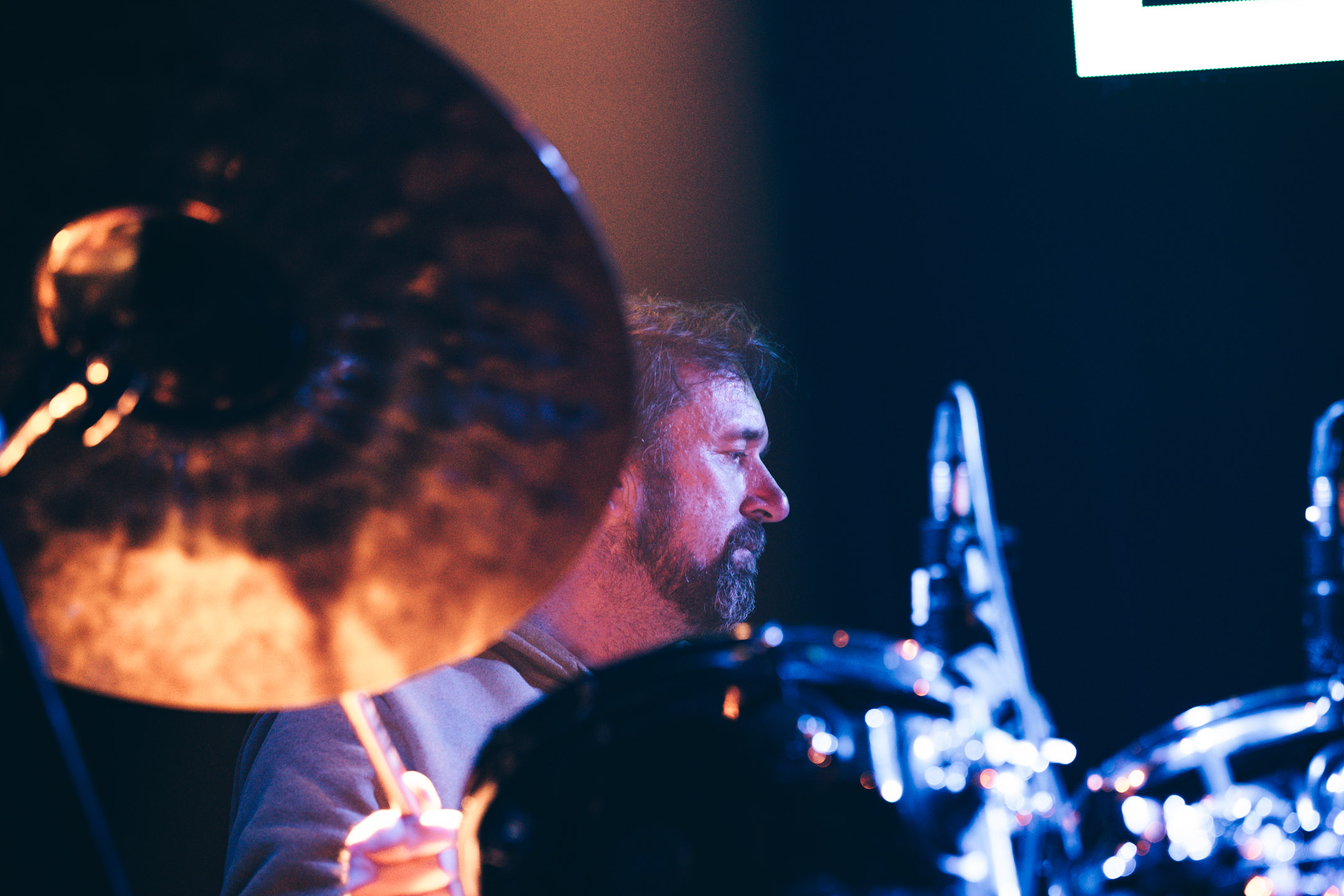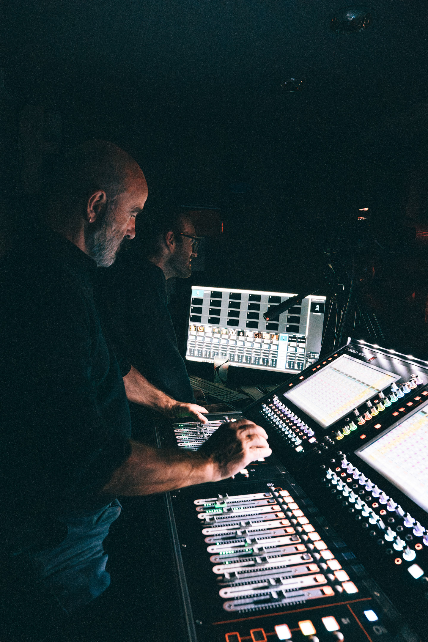War nicht nur einer der Initiatoren des Abends, sondern mit Poldo auch viele Jahre mit dem Bühnenservice elch gemeinsam unterwegs: Werner Huber sorgte an diesem Abend u.a. für den sehr guten Sound im UFO, trotz ständigem Musikerwechsel auf der Bühne. Im Hintergrund zudem: David Huber (Visuals). Foto: Julia von Wenzl