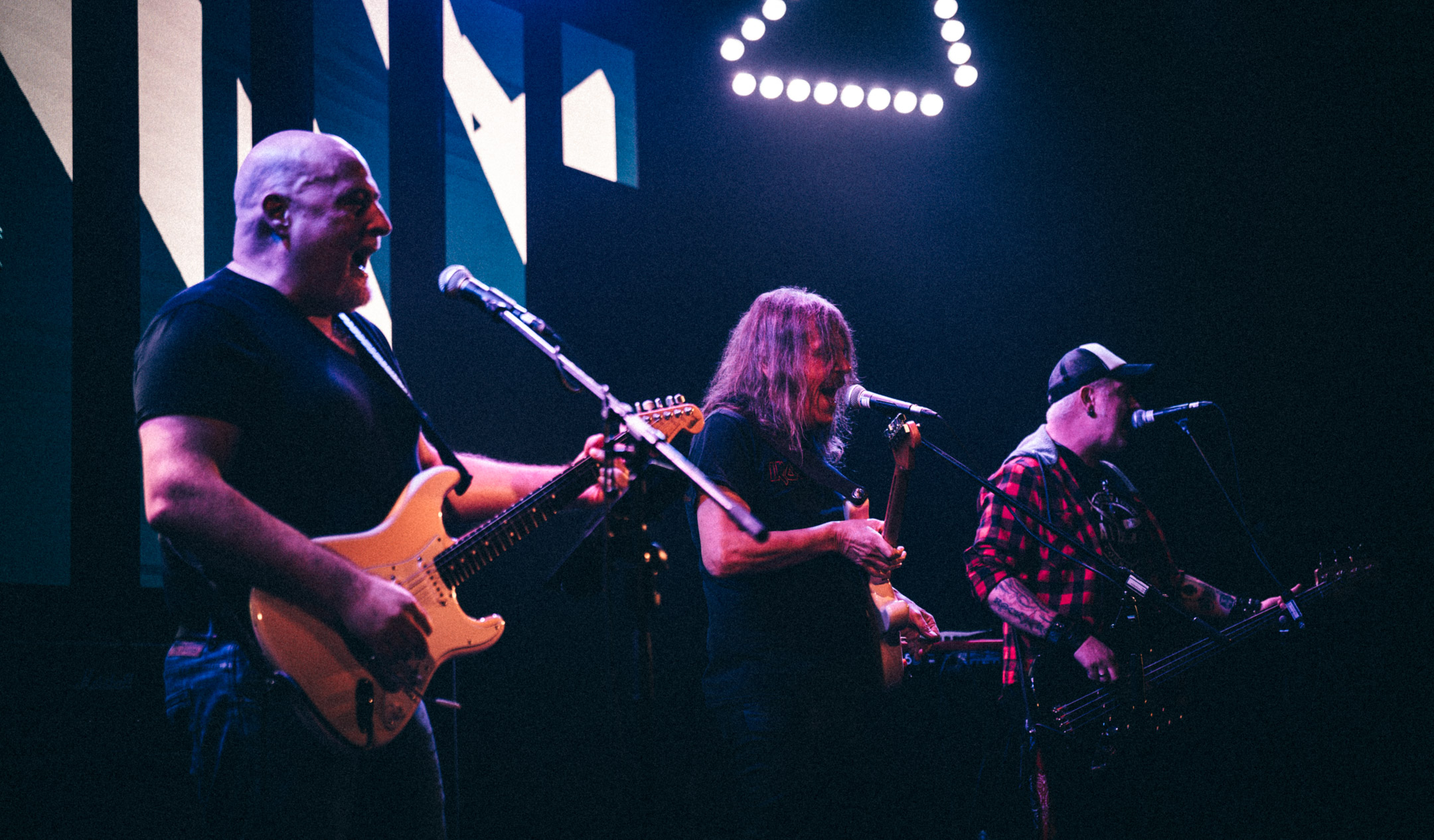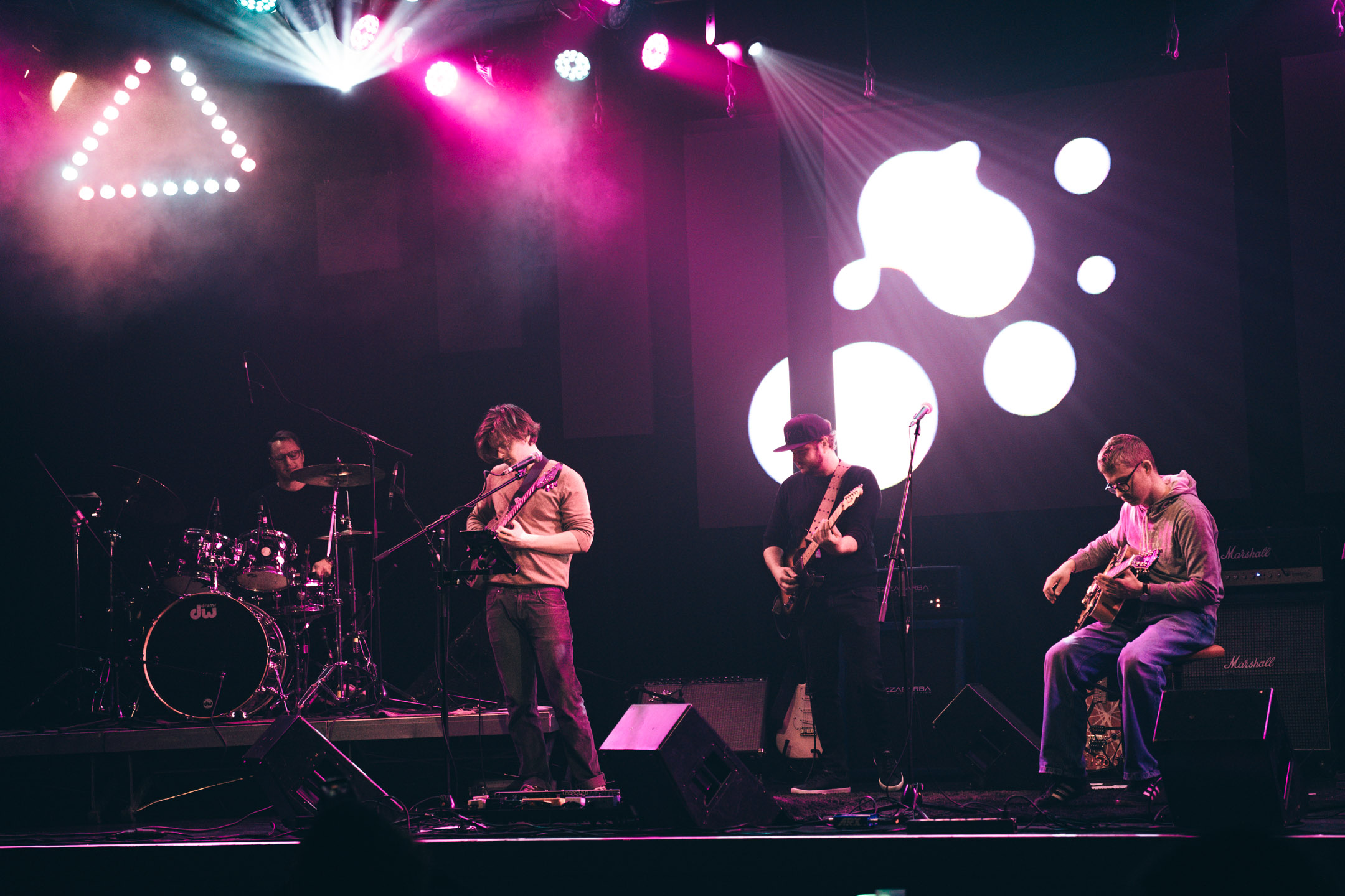 Rock, Blues, Jazz... die musikalische Bandbreite des Abends war einigermaßen umfassend und die Musiker, die Poldo ihren Tribut zollten, hatten nahezu alle einen besonderen Bezug zu ihm (v.l.n.r.): Jakob Schramm (Schlagzeug), Gabriel Moser (Gitarre), Michi Kiem (Gitarre) und Andrea Scalzini (Gitarre). Foto: Julia von Wenzl -