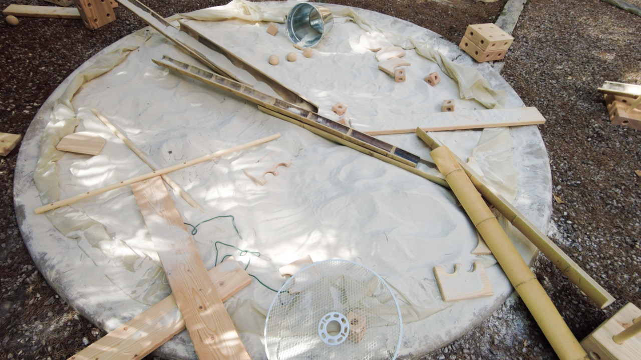 Auch bei der Aktion „Giochiamo così! Spielen wir so!“, die am 13. September im Rahmen des Bozner Kinderfestivals stattfand, stand freies Spiel im Vordergrund. Auf der sogenannten Grünen Insel im Innenhof der Universität wurde ein temporärer Spielplatz mit 22 offenen Materialien gestaltet, auf dem Kinder mit offenen Materialien, von Stoffbahnen und Holzkisten bis zu Wasser, Sand und Rohren, experimentieren konnten. „Die Kinder konnten frei gestalten, ohne Regeln, ganz nach dem Prinzip der loosen Teile“, erklärt Matos.
