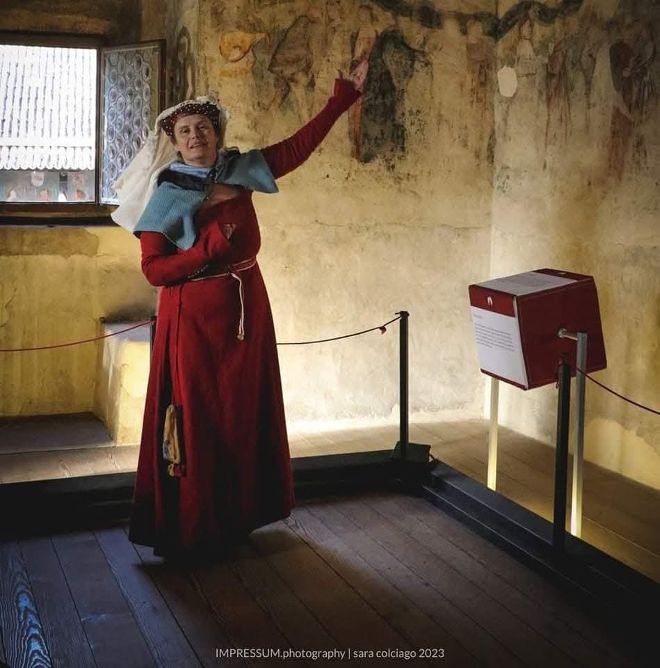 „Ein Tier, das bei Kindern stets beliebt ist, ist zweifellos das Einhorn, obwohl es sich heute in seiner bunten Version sehr vom weißen Geschöpf der alten Abbildungen unterscheidet", sagt Marina Mascher. Die beiden Damen werden während der Veranstaltung in Gewändern aus dem späten 14. Jahrhundert auftreten und die Besucher auf eine spannende Reise durch die Welt der Fabelwesen entführen. „Was könnte besser geeignet sein als ein Schloss, um spannende Geschichten zum Leben zu erwecken?" fragt sie. „Und dann werde ich selbst, gekleidet in Gewänder aus dem späten 14. Jahrhundert, aussehen, als wäre ich aus diesen Mauern geflohen, um einem schrecklichen Monster zu entkommen, das mich verfolgt. Erst wenn es besiegt ist, kann ich meinen Platz wieder einnehmen. Und dafür benötige ich die Unterstützung der kleinen Gäste von Schloss Runkelstein."