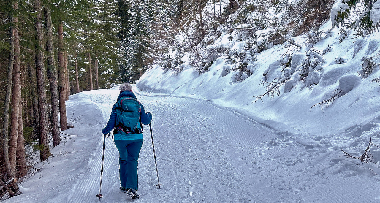 Winterwanderung auf gewalzten Wegen und gespurten Waldsteigen in einer Höhe von 1600 -1940 m.