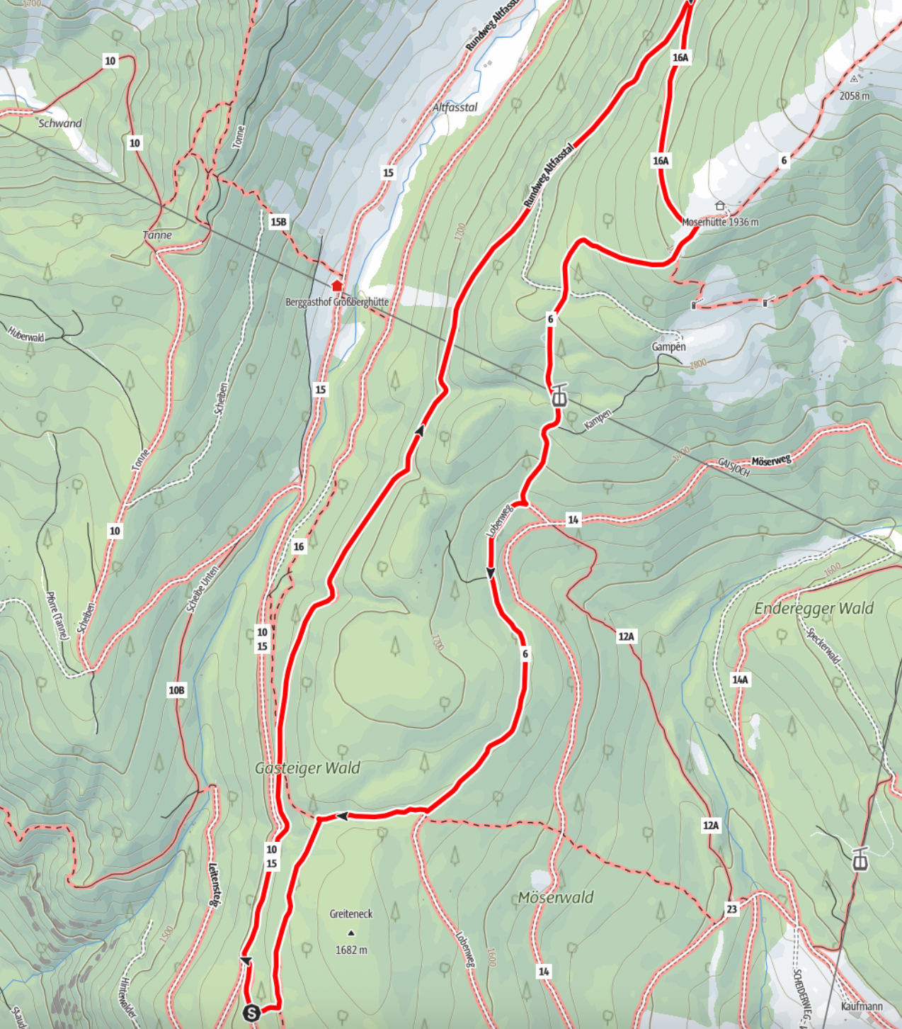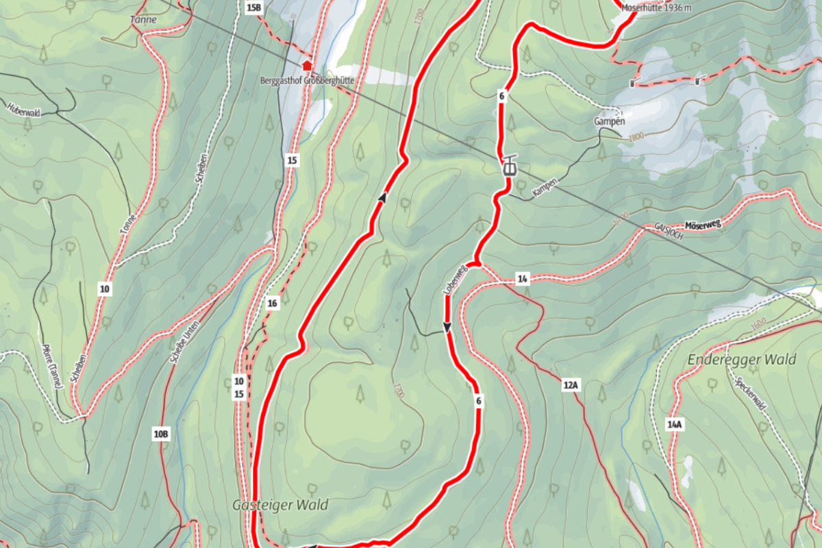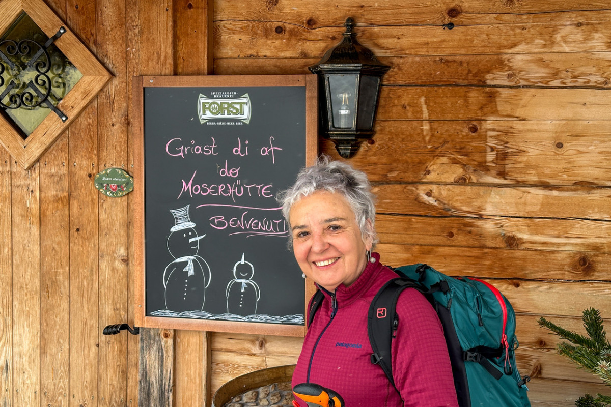 Ausgangspunkt ist der Parkplatz Altfasstal (1.600 m) oberhalb von Meransen. Wir wandern auf dem breiten, von einer Pistenraupe glatt gewalzten Weg, nach wenigen Minuten, bei einer Wegteilung, halten wir uns rechts und folgen den Wegweisern zur Moser Hütte, die Gehzeit ist mit einer Stunde angeschrieben. Links würde der Weg zu einem anderen lohnenden Ziel führen, nämlich ins Altfasstal, aber dort wollen wir ein anderes Mal hin! Der Weg zur Moser Hütte führ stetig leicht ansteigend und geradeaus durch hellen Fischten- und Lärchenwald höher, nach 45 Minuten Gehzeit gibt es eine Rechtskurve, noch eine Viertelstunde und die Moser Hütte ist vor uns. Sie liegt auf einer Verebnung, an der Waldgrenze, nach Süden geht der Blick weit zu den Dolomiten. In der gemütlichen Gaststube -alles ist liebevoll dekoriert, die Wirtin ist eine wahre Meisterin in Handarbeit- sprechen wir den einfachen und guten Hüttengerichten zu. Für den Rückweg nehmen wir die Variante über den Waldsteig Nr. 6 in Richtung Meransen. Nach einer Dreiviertelstunde Gehzeit biegen wir an einer Wegkreuzung rechts auf Weg 23 ab, nach wenigen Gehminuten biegen wir an der Wegteilung nach links auf den Steig 16A (Altfassrundweg, Meransen) ein, er bringt uns zum Altfassparklatz zurück.